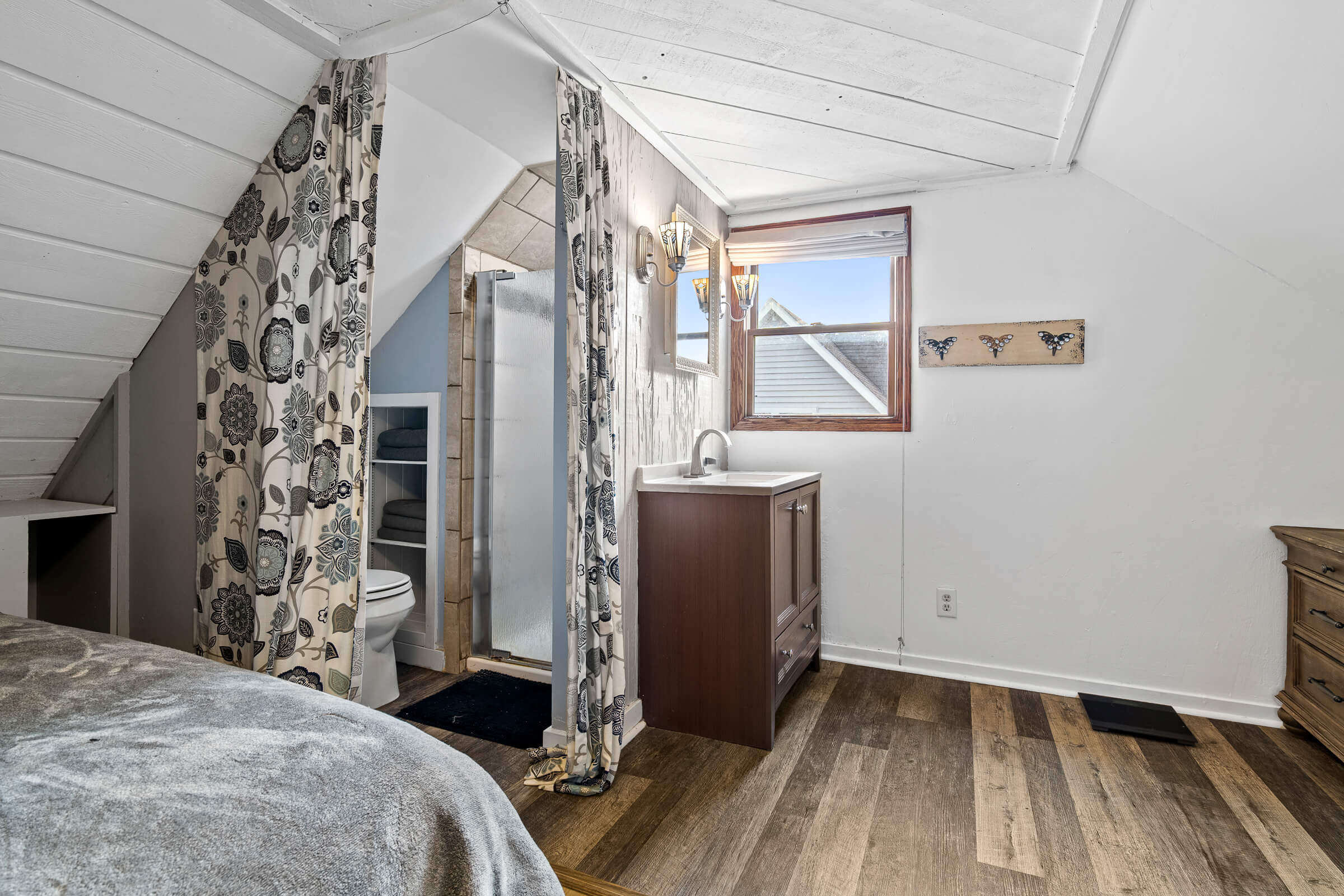 Step inside to find new flooring and paint (2023) through much of the main level. The front foyer opens to a bright living room and on to an eat-in kitchen, followed by two comfortable main floor bedrooms and a full bathroom. Upstairs, you’ll find a spacious primary bedroom with its own private bath area, a second upper-level bedroom, and a versatile loft space ideal for an office, playroom, or reading nook, offering plenty of flexibility for your needs.
