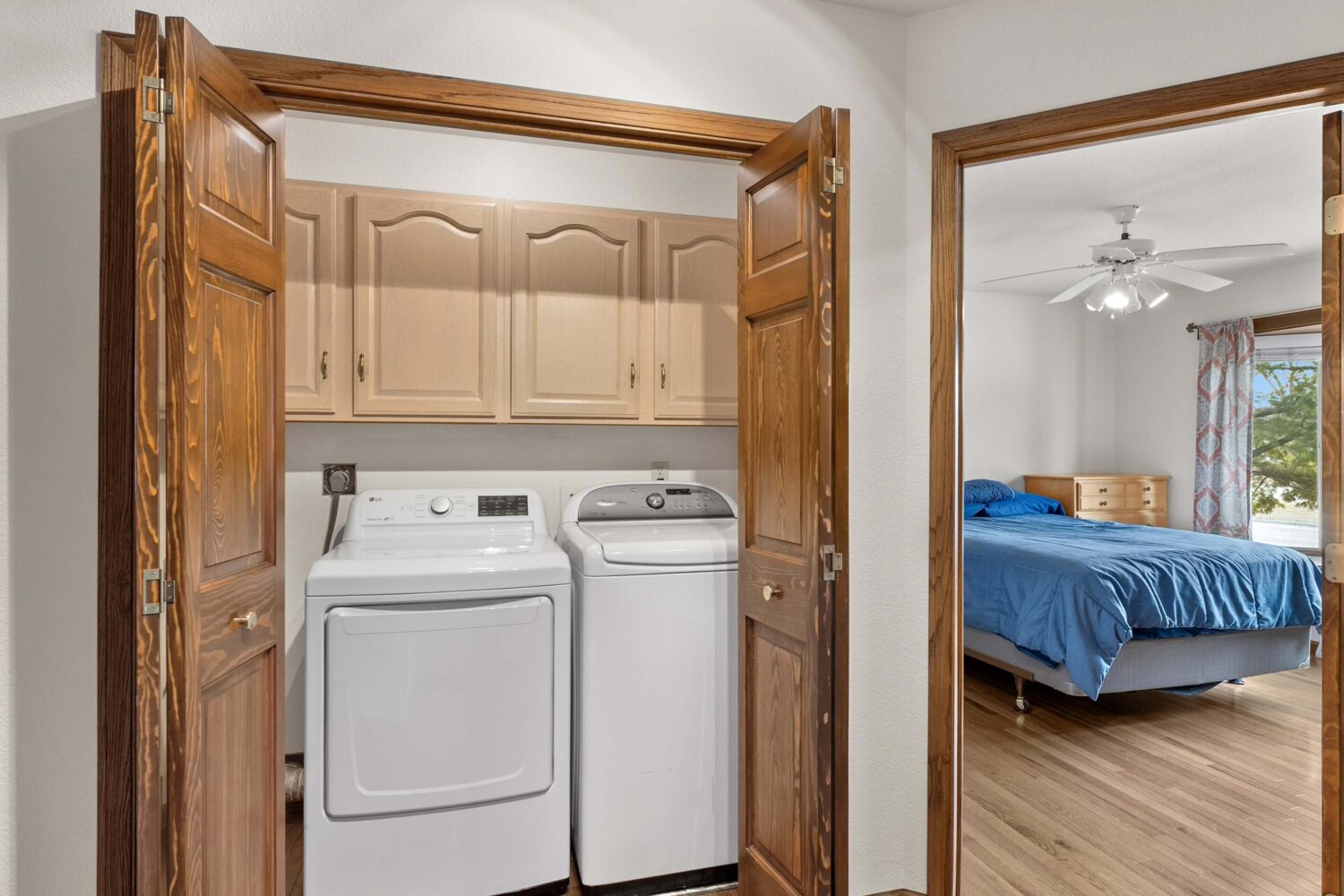 The home features 3 bedrooms, each offering large windows and generous closet space. The spacious primary suite includes 2 walk in closets and a private bathroom complete with a walk-in shower and whirlpool tub, creating a comfortable retreat. Fresh paint in the primary suite adds a clean, updated feel. The first floor laundry is conveniently located near the bedrooms as well