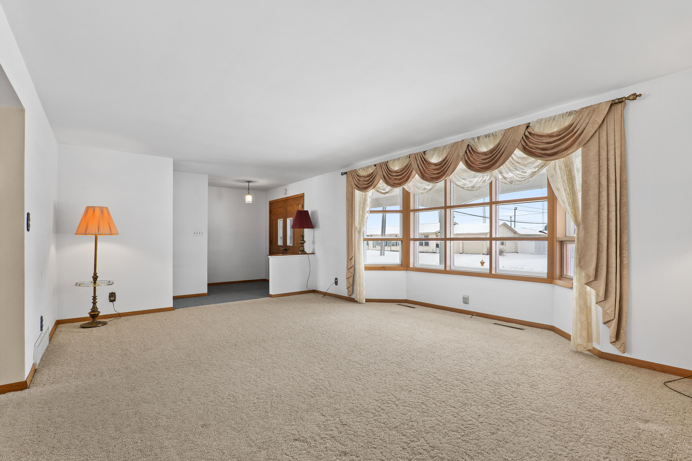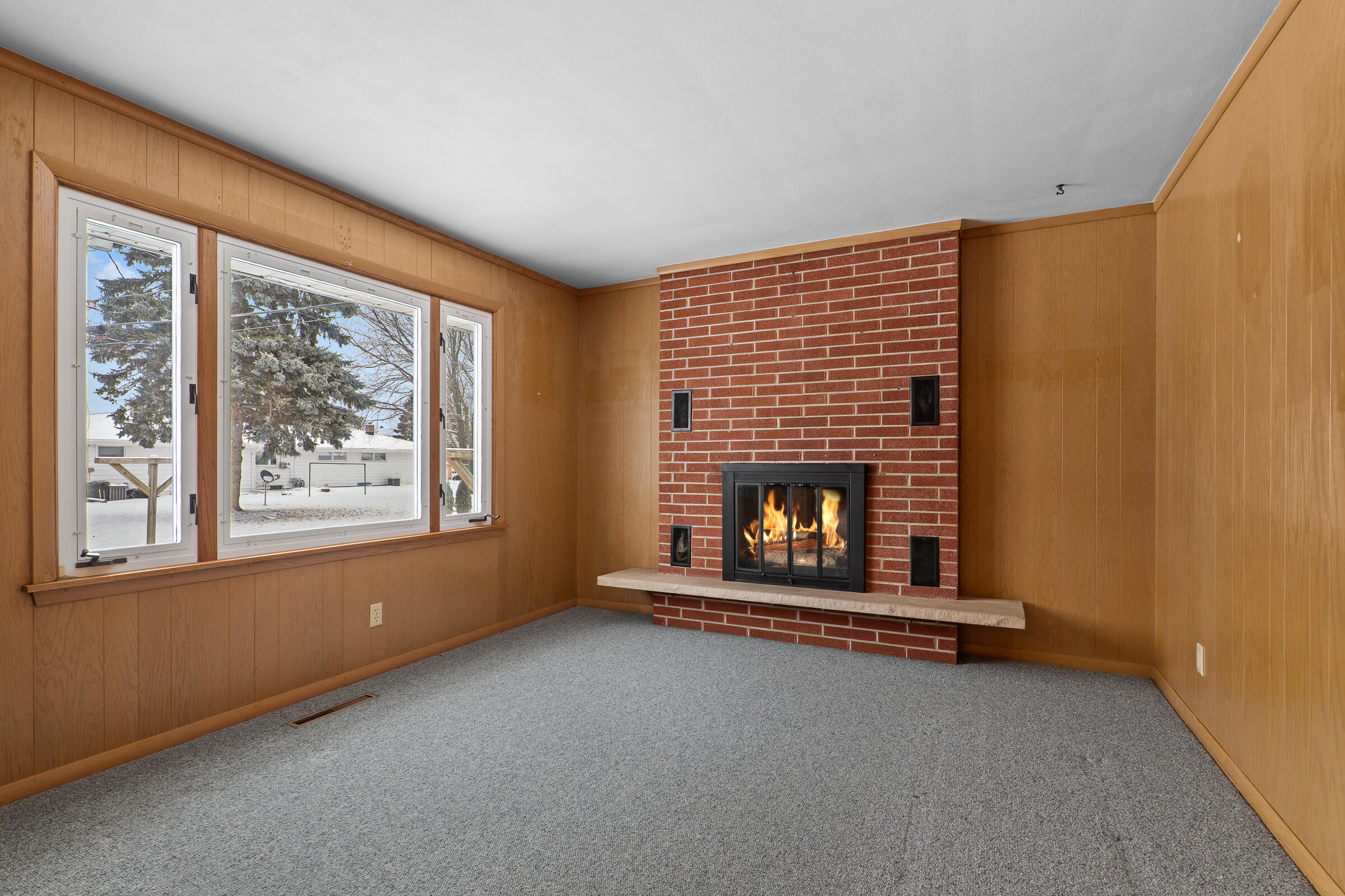 Inside, the home opens to a large, inviting living room filled with natural light—an easy place to relax, gather, or unwind at the end of the day. Just beyond, an additional family room with a fireplace adds warmth and character, creating a cozy setting for evenings, holidays, or quiet mornings with coffee.