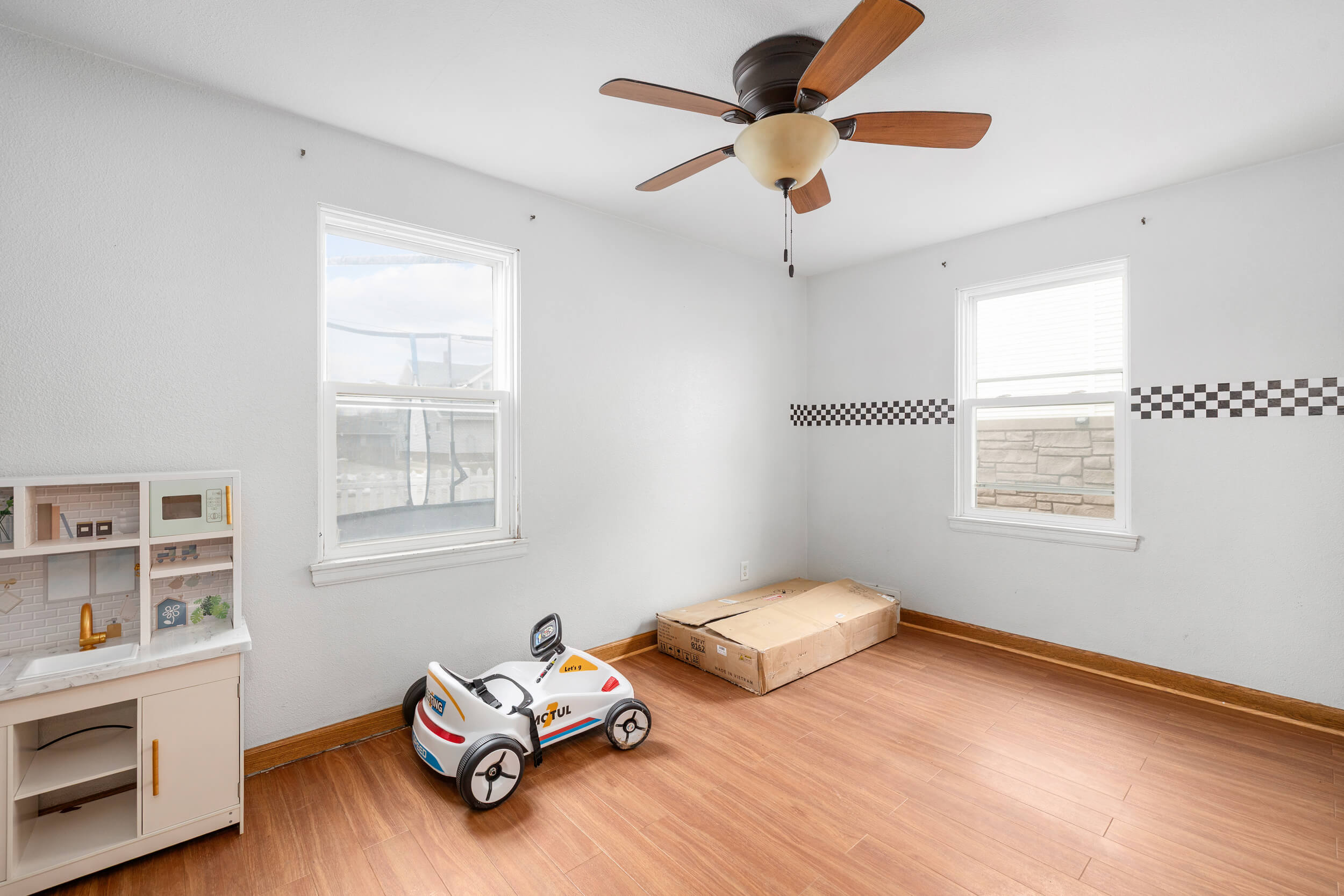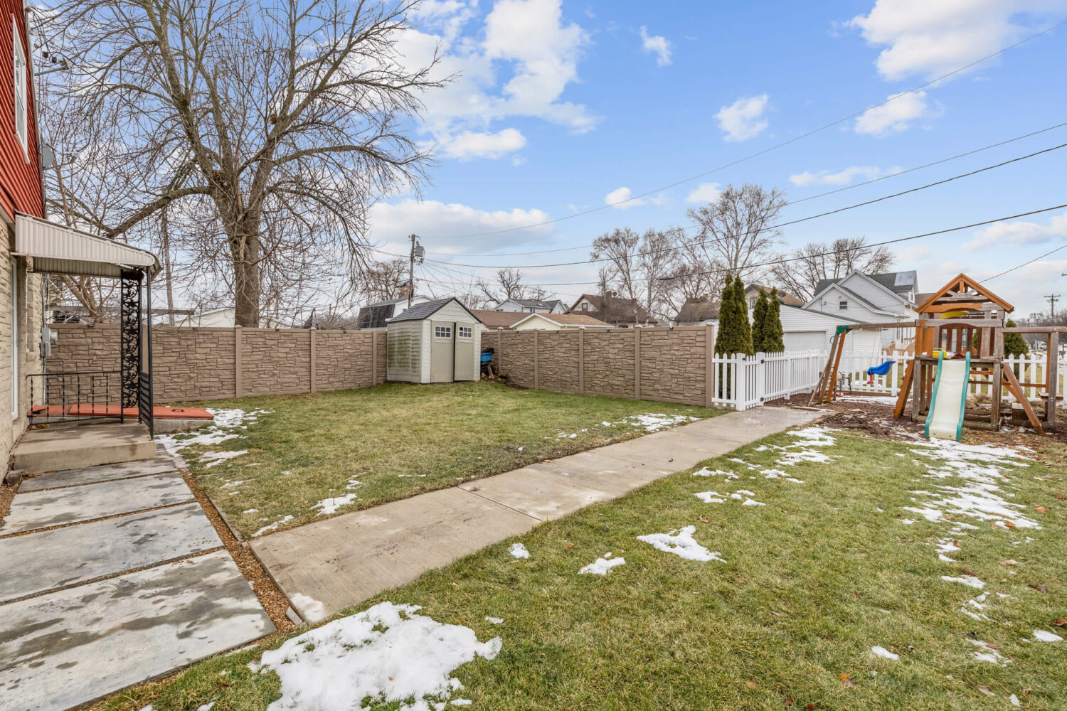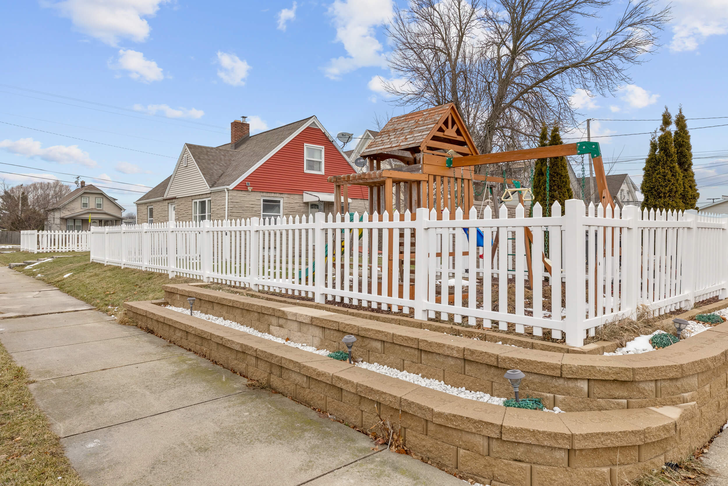 This 4-bedroom cape cod needs a new family! The home is located on a corner lot and provides a fenced in yard and concrete patio area along with a fenced in play area for the kids. Entering the home, you will be greeted with a cozy living room that has a natural fireplace. Just off the living room you’ll find the spacious dining area and kitchen with breakfast bar. Also located on the first floor is the full bath S.O.T, main bedroom and second bedroom. Upstairs you will find a common area that could fit a small couch and tv, along with 2 more bedrooms and a half bath.