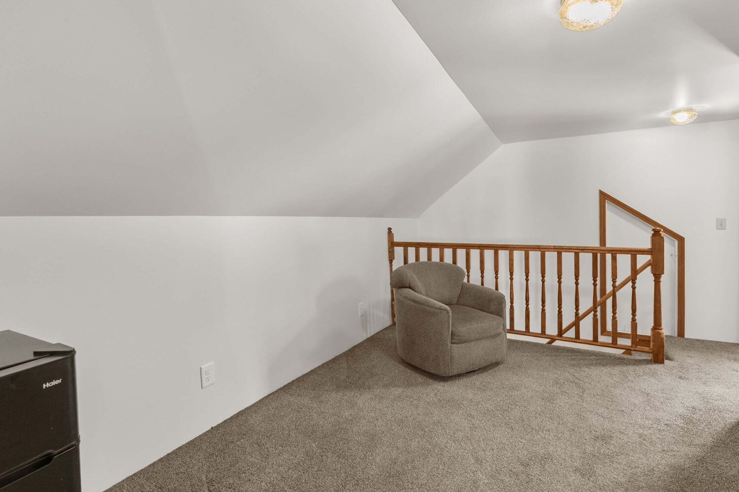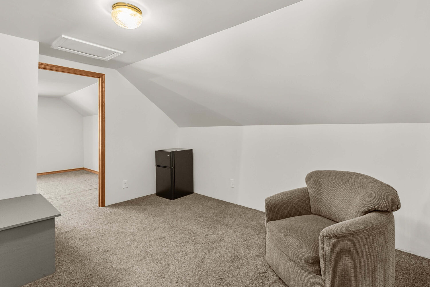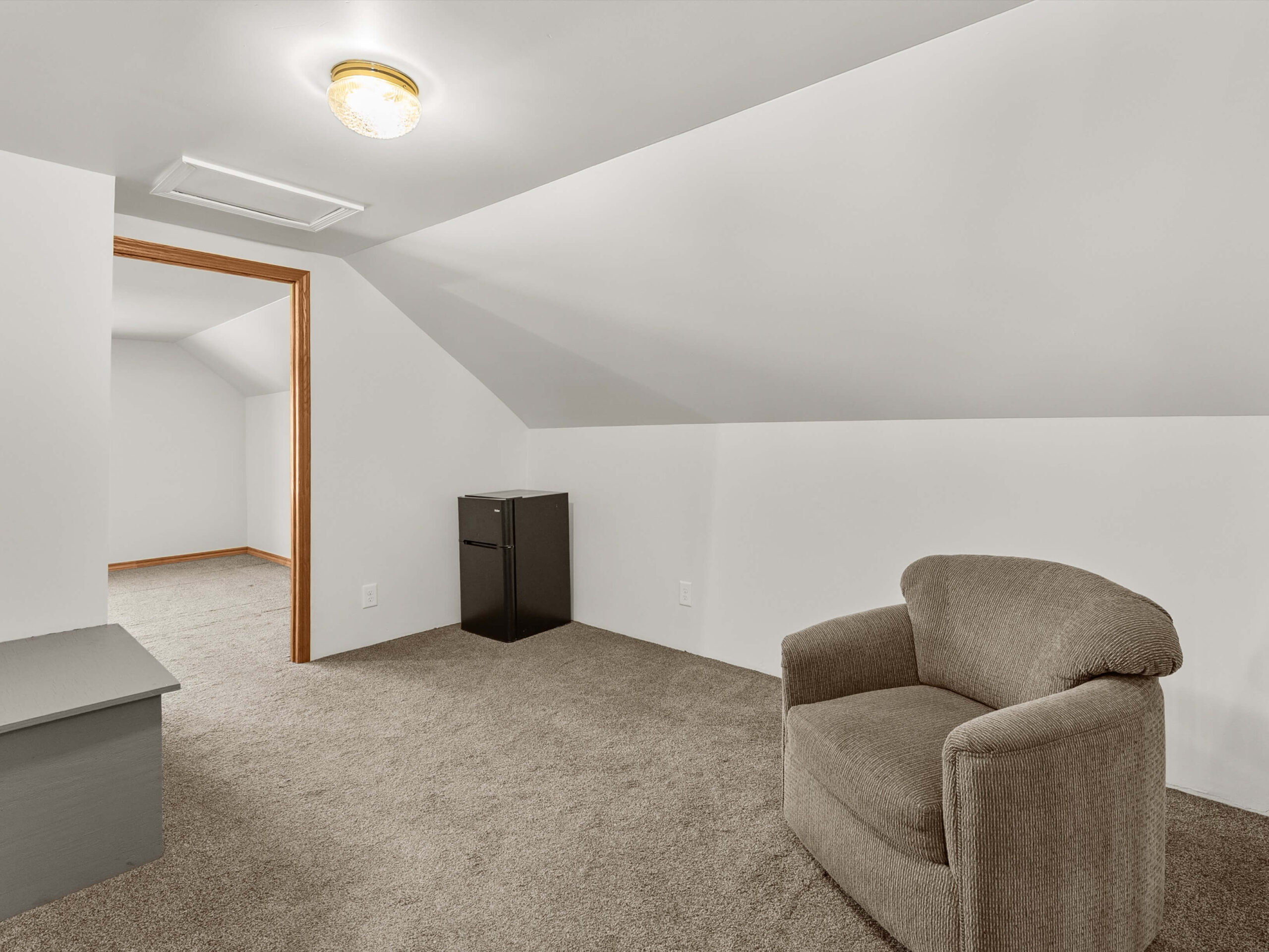 Upstairs you’ll find 2 bedrooms, including a primary bedroom with a large closet and windows overlooking the street. A loft area provides great space for gaming, hobbies, or a second living area, and a small door leads to a walk-in attic for additional storage.