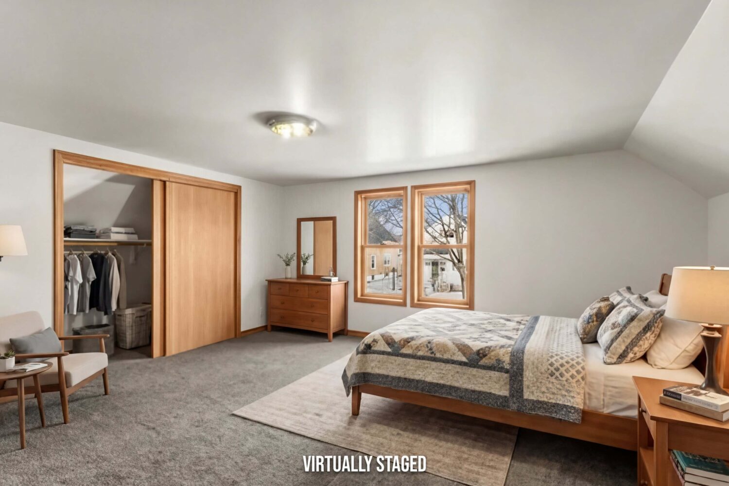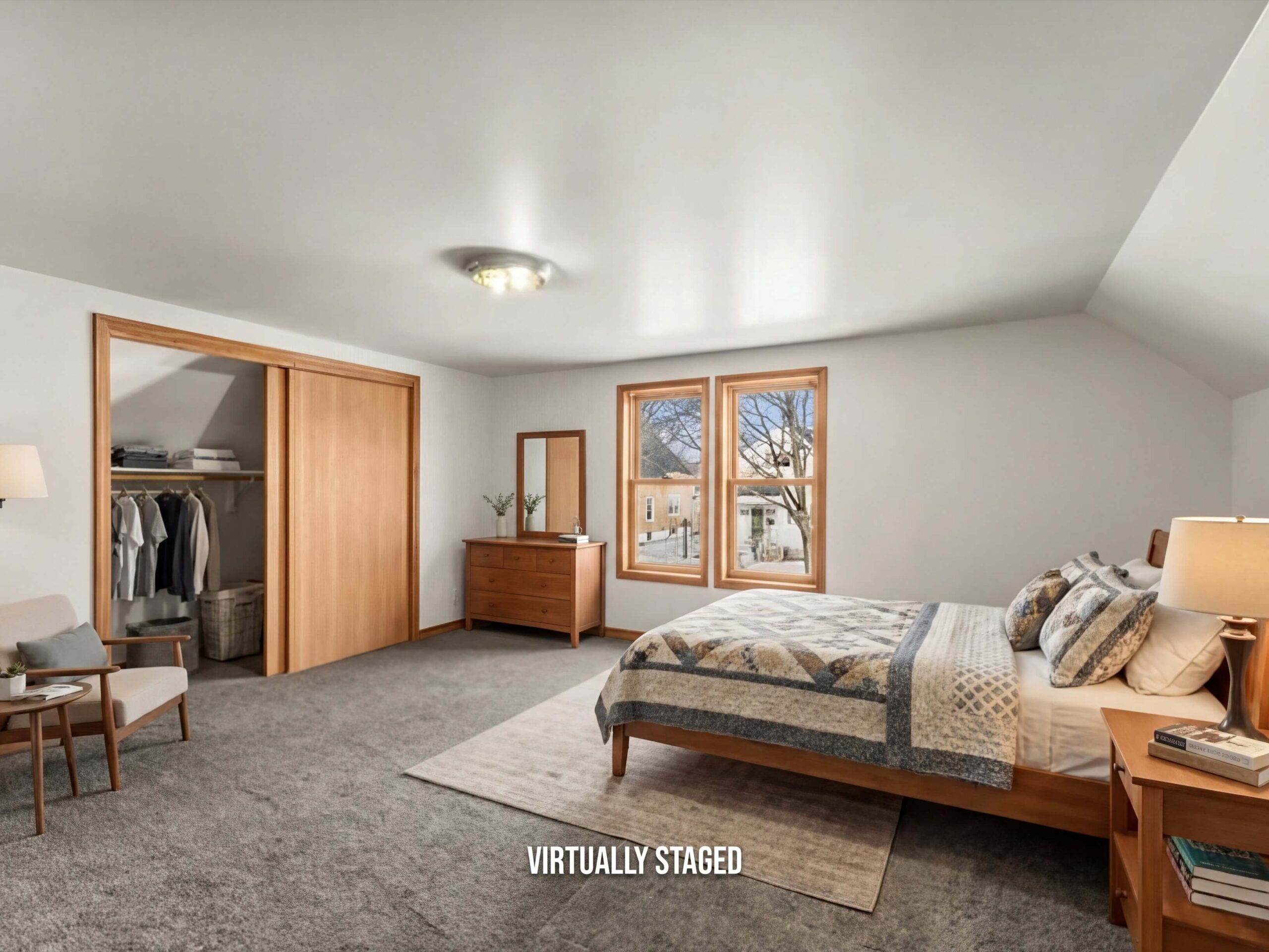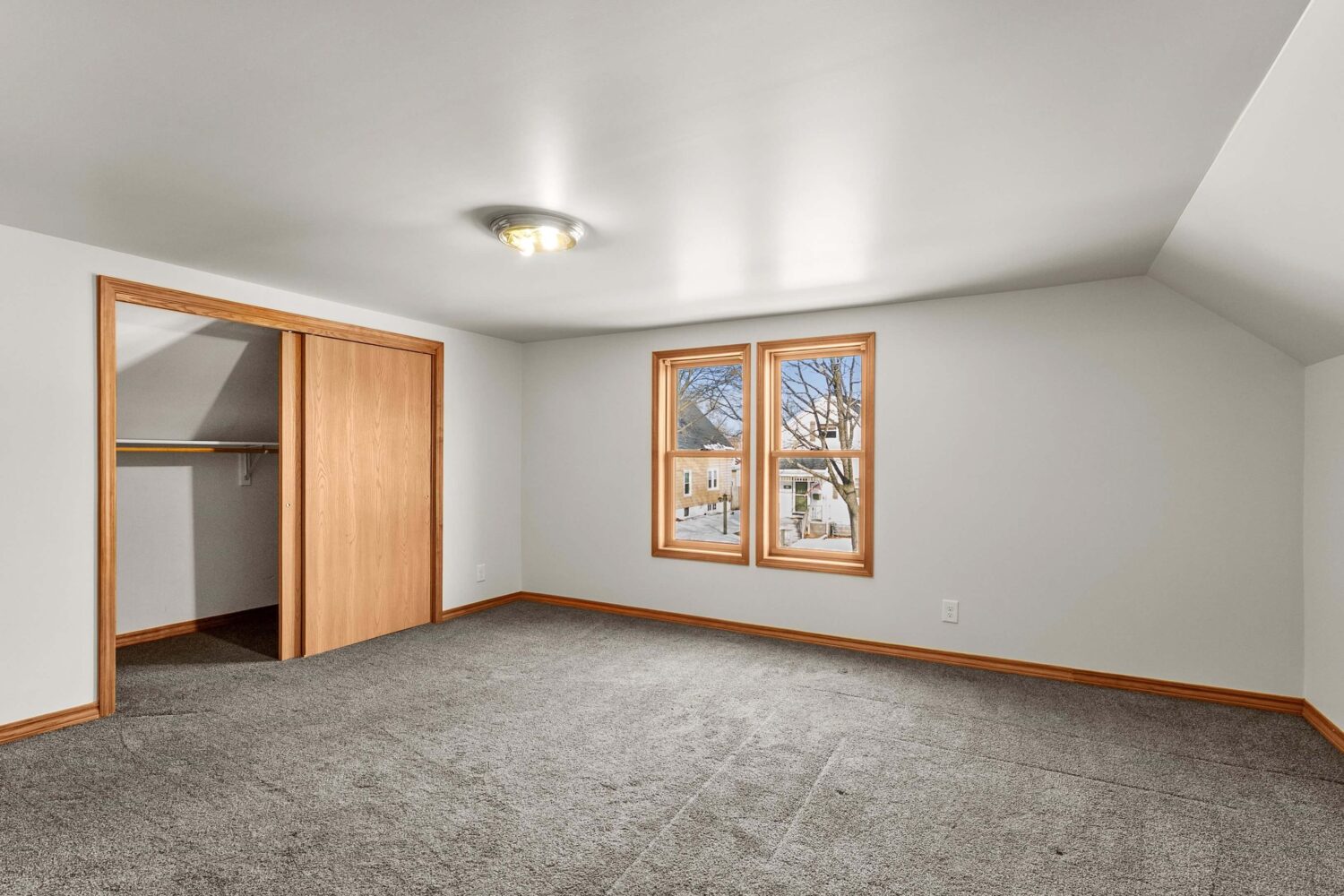 Upstairs you’ll find 2 bedrooms, including a primary bedroom with a large closet and windows overlooking the street. A loft area provides great space for gaming, hobbies, or a second living area, and a small door leads to a walk-in attic for additional storage.