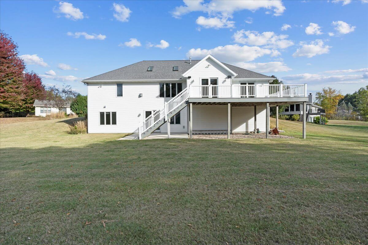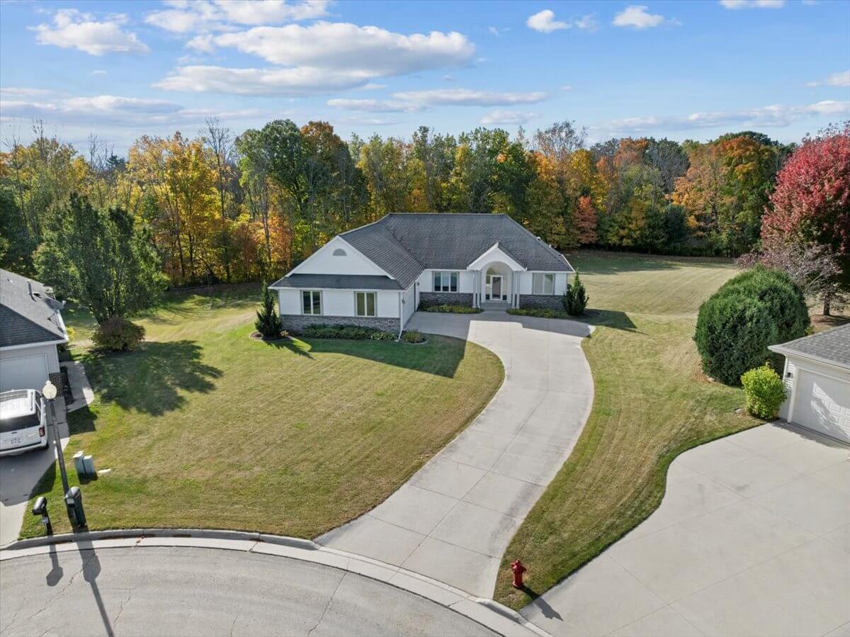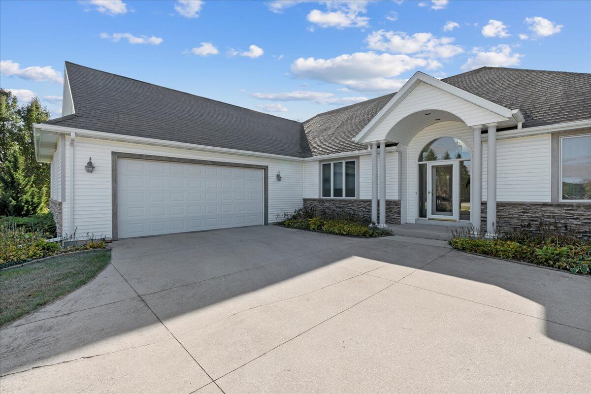 An oasis in the City of Sheboygan Falls, set on 5+ acres, is what this 4 bedroom, 3 full bath sprawling exposed ranch has to offer you as we prepare for the holiday gatherings. The vaulted living room offers skylights, a gas fireplace, a wall of windows and grand views of the backyard which is partially wooded. The Kitchen/Dining room combo includes granite counters, plenty of cabinetry, and patio doors leading to the large composite deck. The main level also offers a recessed ceiling office area with built-in bookshelves. This split bedroom design home is a favorable for many. The large primary suite has a nice sized walk-in closet, bathroom including a walk-in shower and whirlpool tub as well as dual sinks. Grab your cup of coffee and relax on the deck while watching the wildlife, right outside the patio door off of the suite. There are 2 additional bedrooms on the main level that are nice in size as well and offer nice size closets. There is also the popular first floor laundry room. Need more room to entertain? Look no further. The exposed lower level has a grand sized family room which includes a wet bar and patio doors leading to the patio area. Additionally in the lower will be bedroom #4 as well as a full bath. There is an oversized 2.5 car attached garage which also has stairs leading into the basement. Did I mention this is all located on a cul-de-sac? Treat yourself to 223 Concord Drive, Sheboygan Falls.