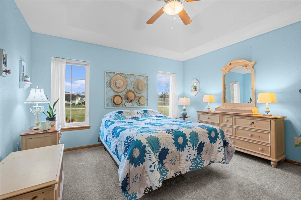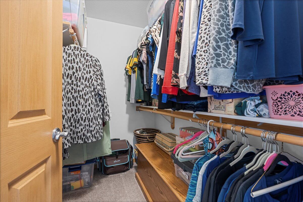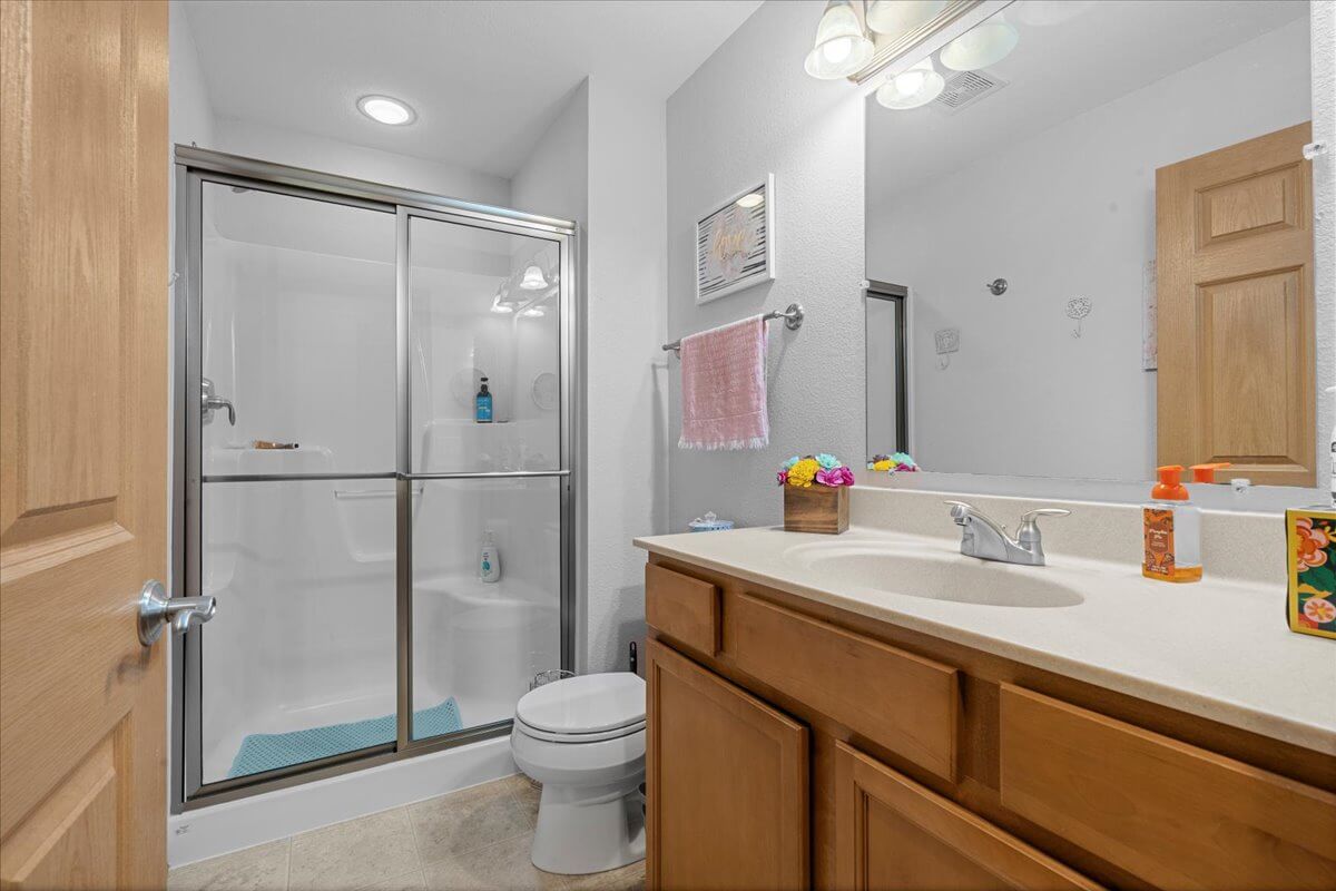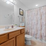 Primary bedroom includes walk-in closet and ¾ bath. Second bedroom and additional full bath with shower over tub.