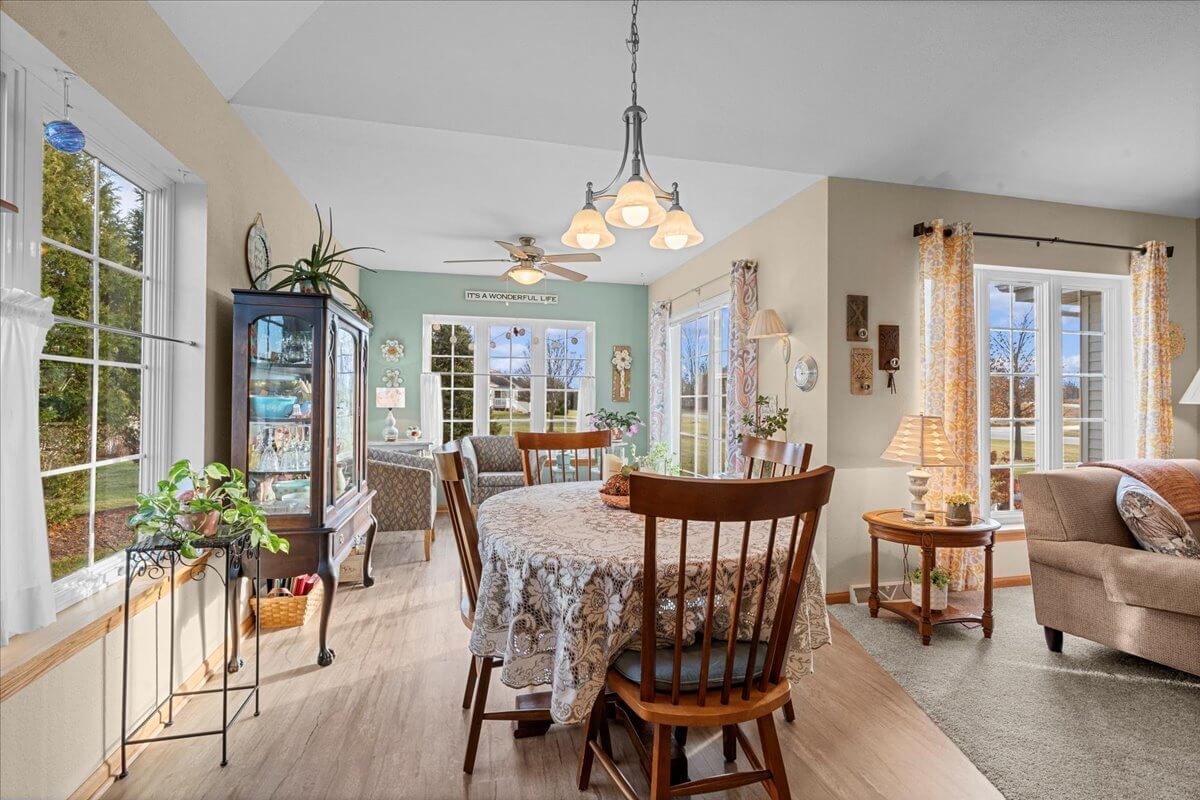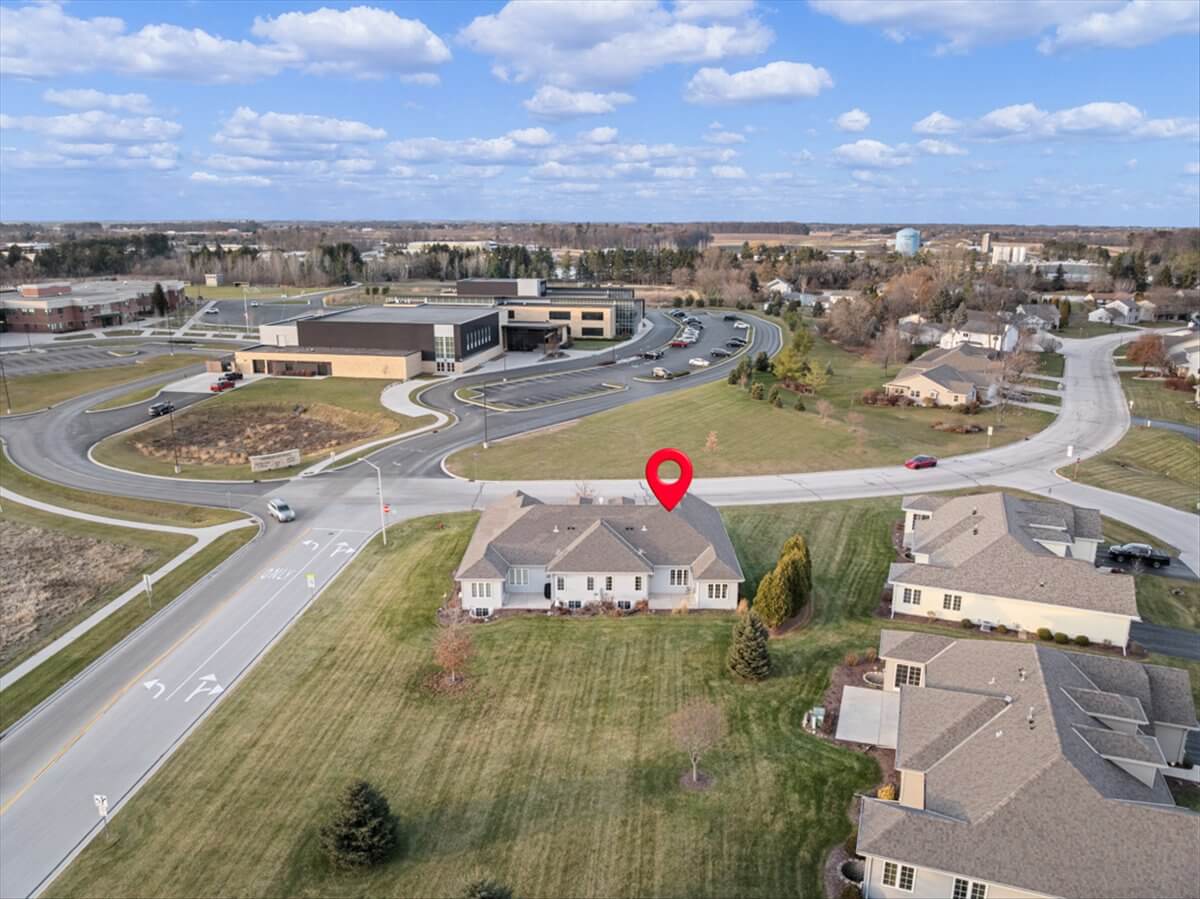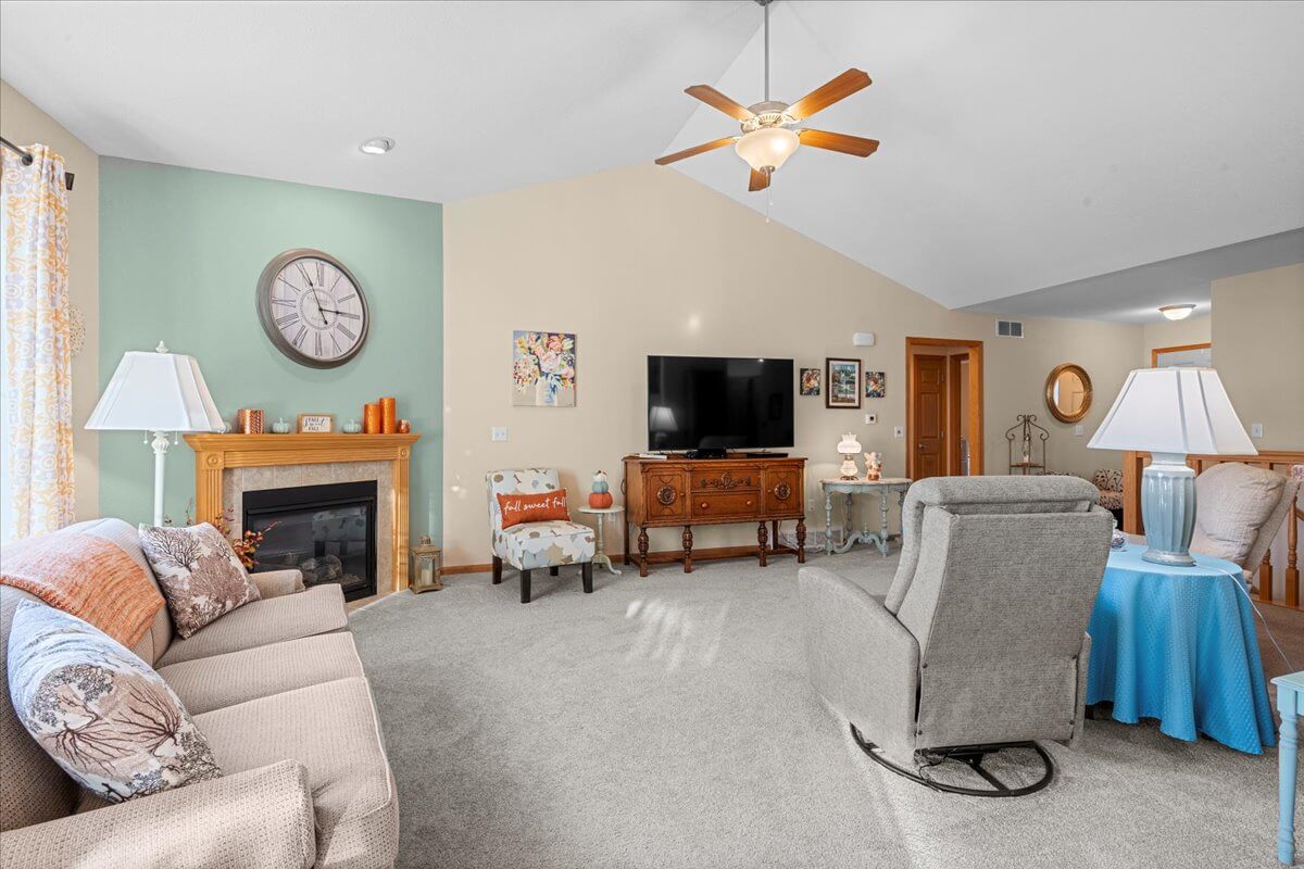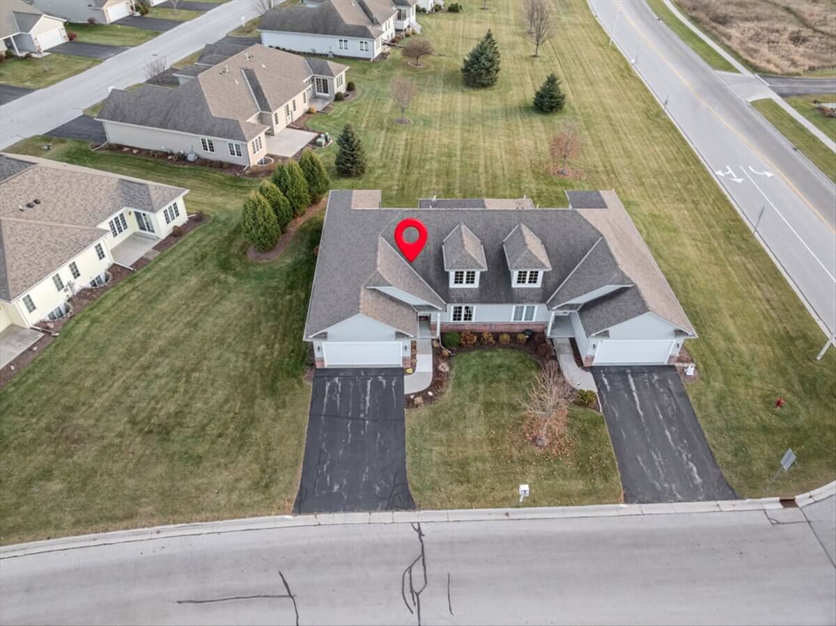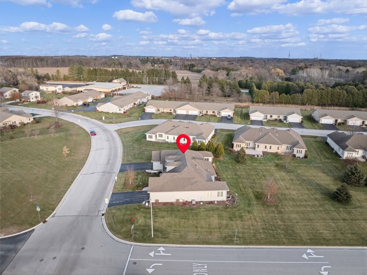 Well-maintained 2 bedroom, 2 bath side-by-side ranch end-unit condo with 2-car attached garage. Built in 2009 and offering 1,435 sq ft on the main level. Very open concept with spacious living room featuring vaulted ceilings and gas fireplace. Large kitchen with peninsula/high counter and appliances included. Adjacent dining area plus separate sun room. Inviting foyer with dormer. Convenient 1st-floor laundry.