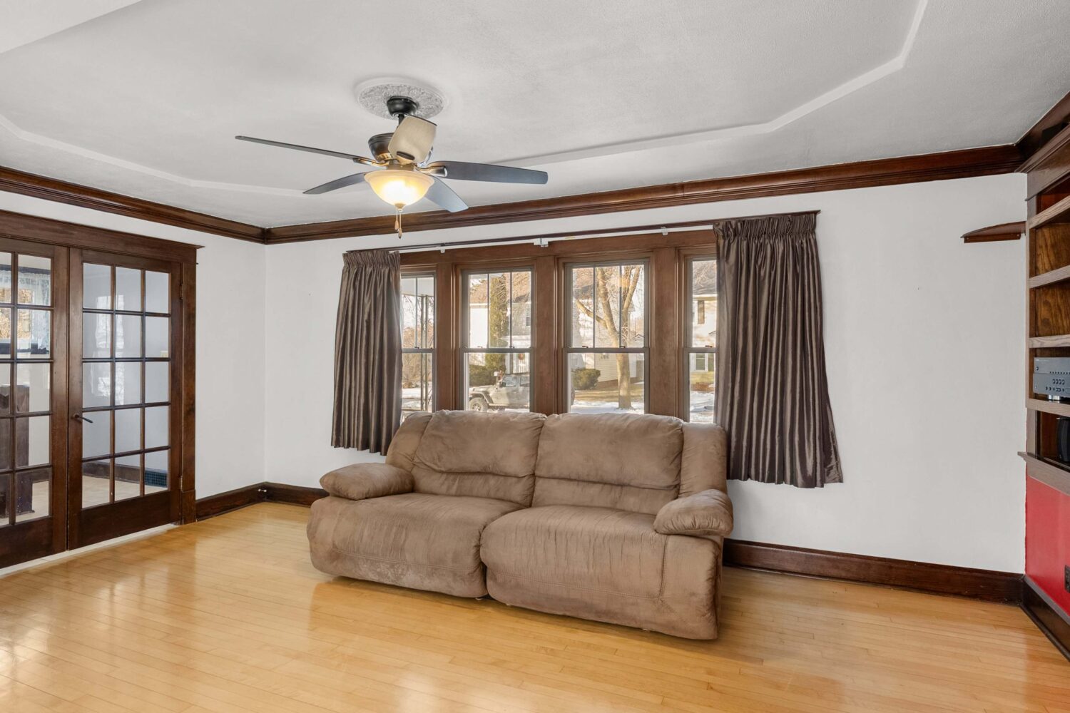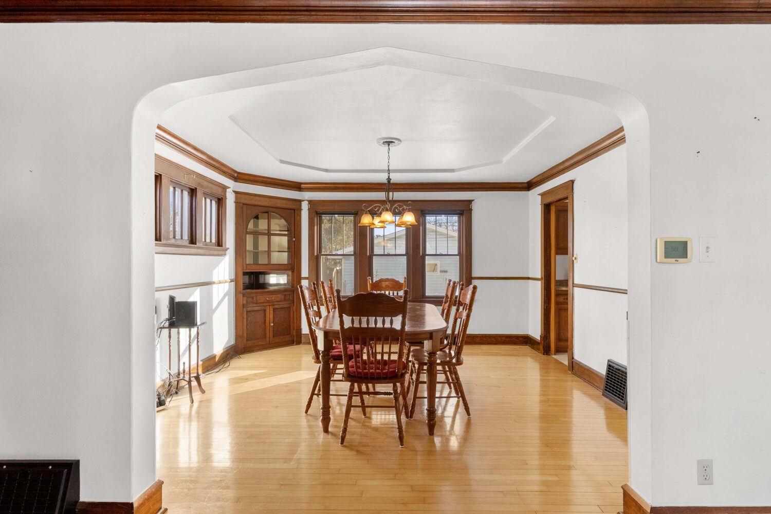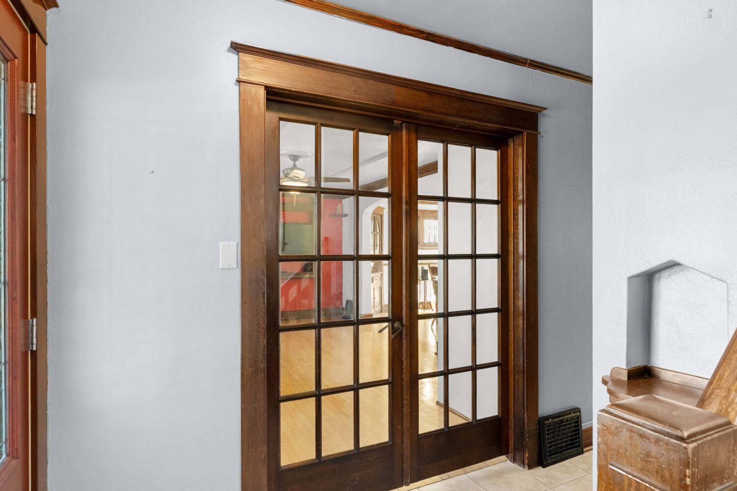 This beautiful 1,456 sq ft Colonial home, built in 1929, is rich in character and showcases original wood trim, original glass doorknobs throughout, and timeless architectural details that are increasingly hard to find. From the moment you step inside, you’re welcomed by a gracious foyer that sets the tone for the home’s warmth and craftsmanship. Glass French doors open to a light-filled living room featuring a tray ceiling with added design detail, flowing seamlessly into the formal dining room.