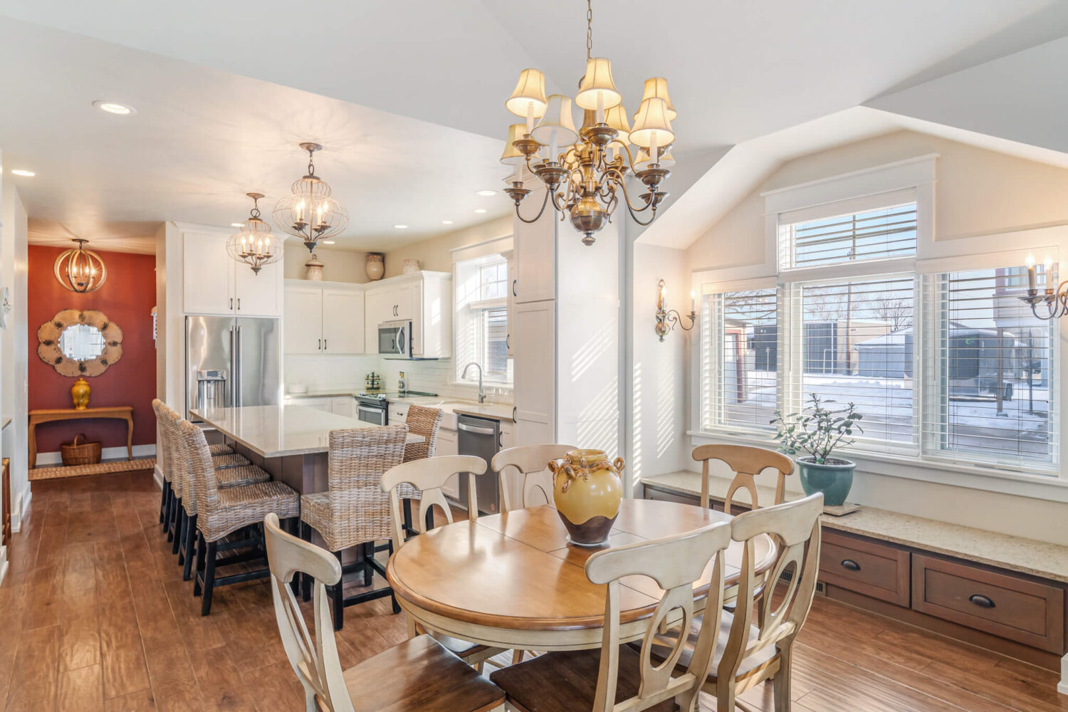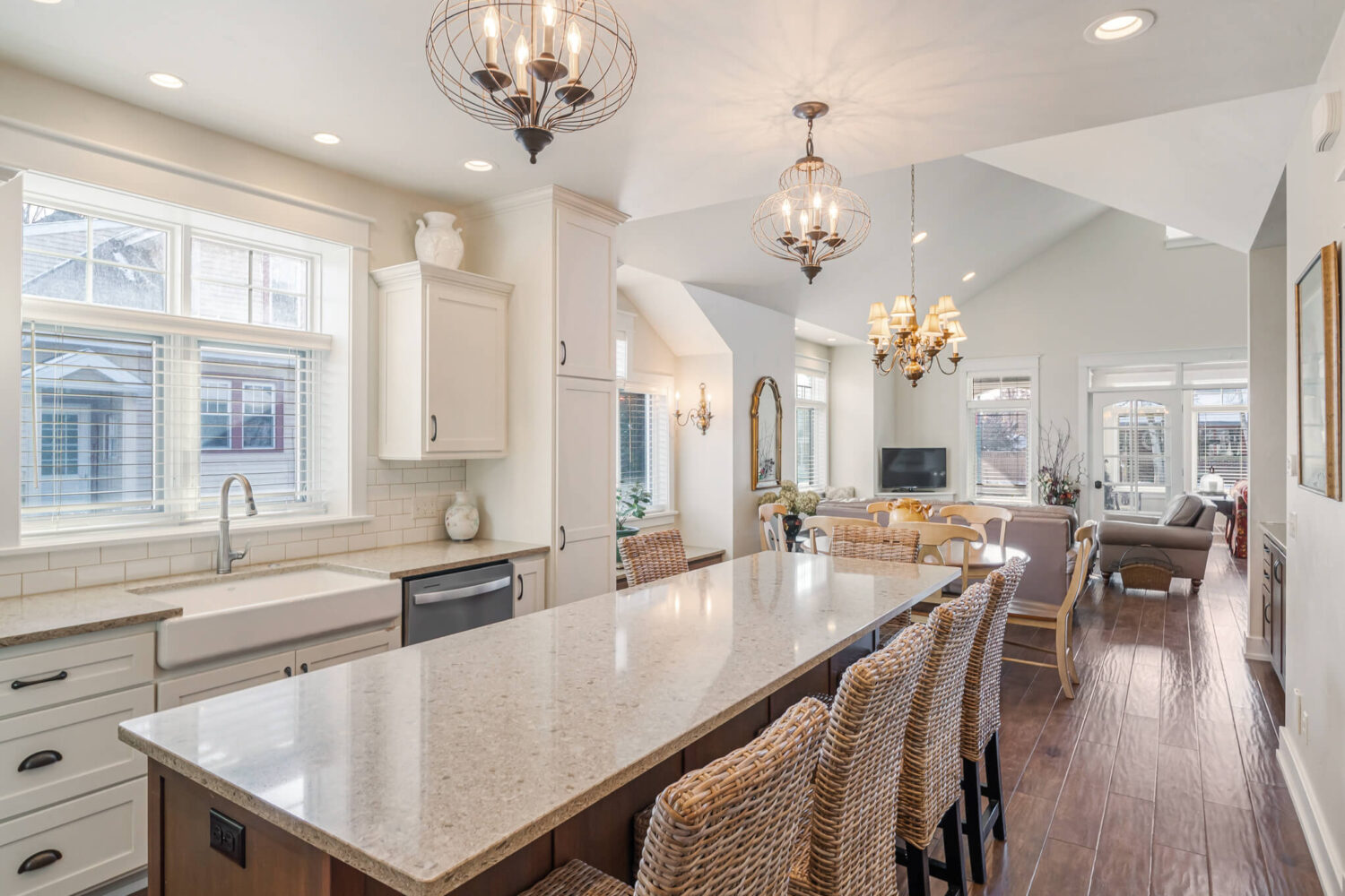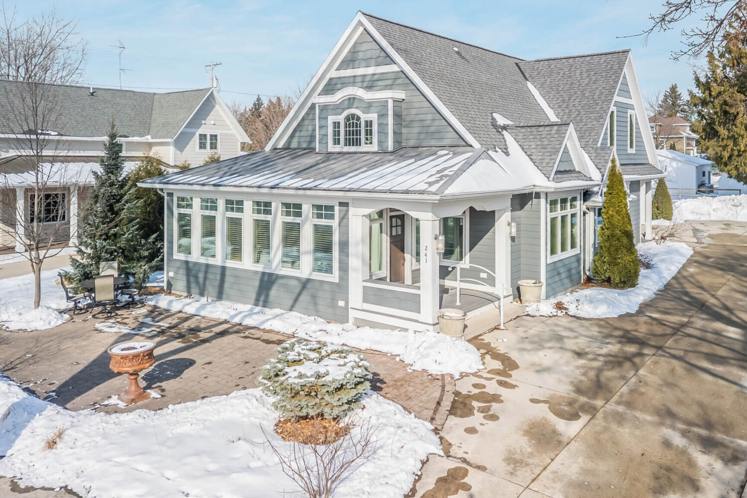 Nestled in historic Elkhart Lake, this beautifully crafted home blends timeless charm with modern comfort—complete with a front-row seat to the famous Road America vintage car parade. Professional landscaping, a concrete drive, and a paved patio create standout curb appeal. Inside, enjoy a main-floor owner’s suite, convenient laundry, two car heated garage, and a stunning kitchen with custom cabinetry and quartz counters. The open living area, sunroom, white oak floors, and reclaimed stained glass add function and character throughout. On the second floor you will find two bedrooms, a full bath, reading nook along with access to an unfinished bonus room. The partially finished basement offers a family room, half bath, laundry room & flex space to customize to your needs. This home was designed with style & function.