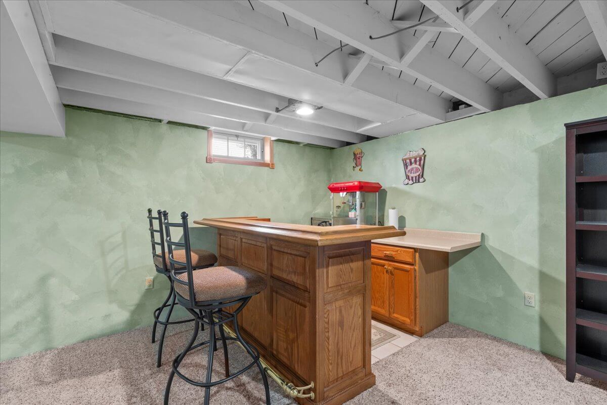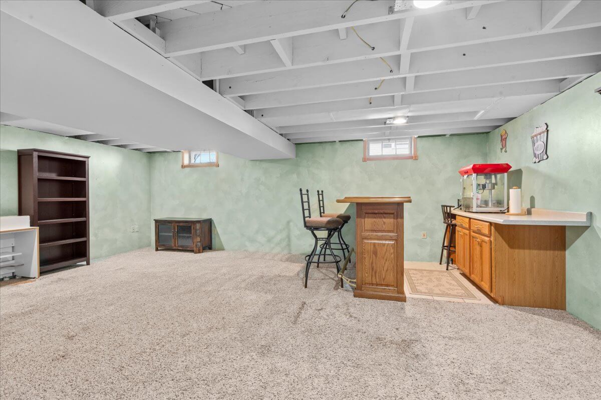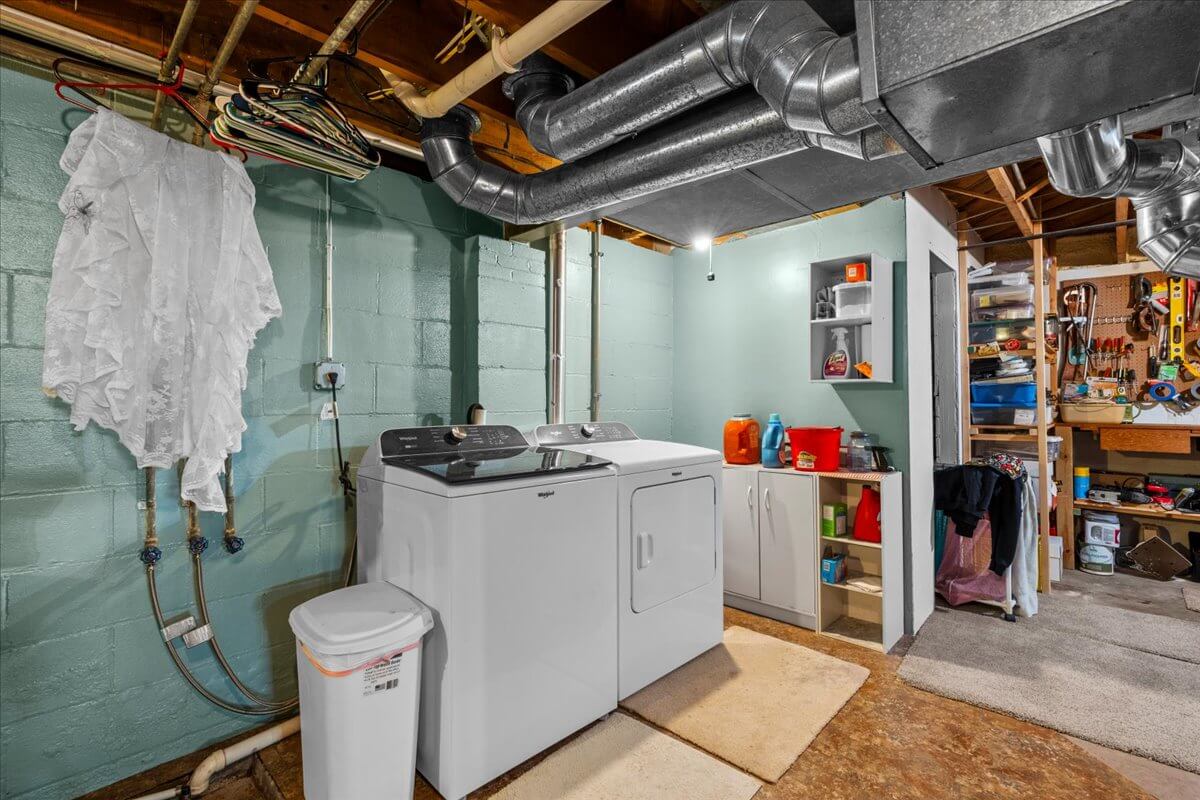 Stove, Refrigerator, Microwave, Dishwasher, Water Softener, Washer, Dryer, Bar, Bar Stools, Basement Workbench, 3 Kitchen Stools