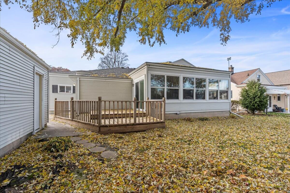 Gift yourself for the holidays! Cute as a button, this 3 bedroom, 1 full bath ranch home is ready for you. All 3 bedrooms are located on the main level. There is a generous sized enclosed sun porch adjacent to the primary bedroom which includes a wall of windows overlooking the nice sized backyard as well as patio doors leading to the deck. The full bath is also located on the main level. Updated kitchen with all appliances included as well as a snack counter overlooking the spacious and inviting living room. The lower level offers storage areas as well as a entertainment sized rec area with bar included. The basement is also plumbed for extra bath space. Other features include a new roof in 2022, a 1 car garage, shed for extra storage, and maintenance free siding. Cozy, Friendly, Carefree. Snuggle in for the Holidays at 311 Park Street.