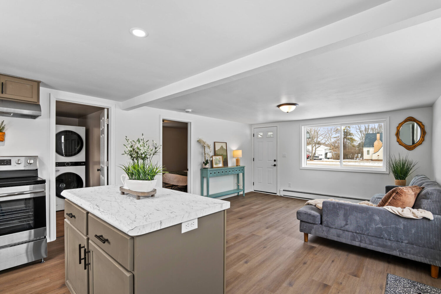 Welcome home to this charming, fully renovated full time home or cottage on a RARE .54 acre lot just over a block from Lake Michigan and Hika bay boat launch. This thoughtfully updated home offers turn key moving in an unbeatable location, perfect for a weekend getaway, downsizer, or anyone seeking a simplified lifestyle near the water. Every inch of the interior has been completely refreshed with brand-new flooring, cabinetry, fixtures, appliances, and a beautifully finished bathroom featuring a new shower, toilet, and vanity. The home also boasts major updates including new windows and doors, a new roof and gutters, updated electrical, a boiler furnace (less than 10 years old), and a new water heater. Outside, enjoy the breeze off the lake in summer on the expansive ½-acre flat lot that’s ready for your landscaping touches. A newly built shed is included offering convenient storage. Glimpses of Lake Michigan from the front yard and immediate access to the nearby boat landing make this property ideal for lake lovers, boaters, and outdoor enthusiasts. Don’t wait, schedule a showing today!