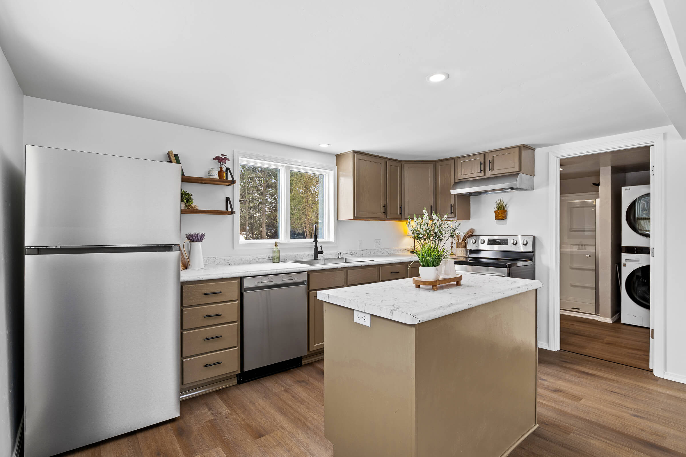 Stove, Refrigerator, Dishwasher, Washer, Dryer, Basement Freezer (as is condition), Dehumidifier, Shed