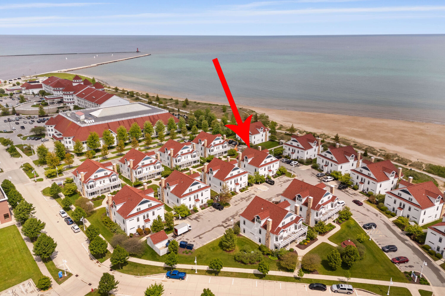 Welcome to 418 Beachfront Court your dream vacation getaway! Just 75 steps to beach! This 2 bedroom, 2 bath main floor unit (no stairs!) is located on South Pier in Sheboygan, a vibrant neighborhood and perfect vacation spot! A short walk to boutiques, fabulous dining, ice cream & coffee shops and even mini-golf! This condo has been a successful short term rental and is being sold furnished so it is ready to go! Cozy unit with a dining space and snack bar in kitchen. Spacious living room offers a gas fireplace. In unit laundry for convenience. 2 parking spots are included. Enjoy your private front porch patio for outdoor dining and lake breezes!