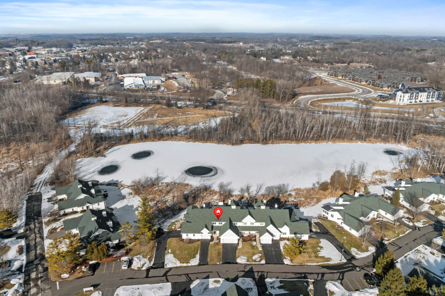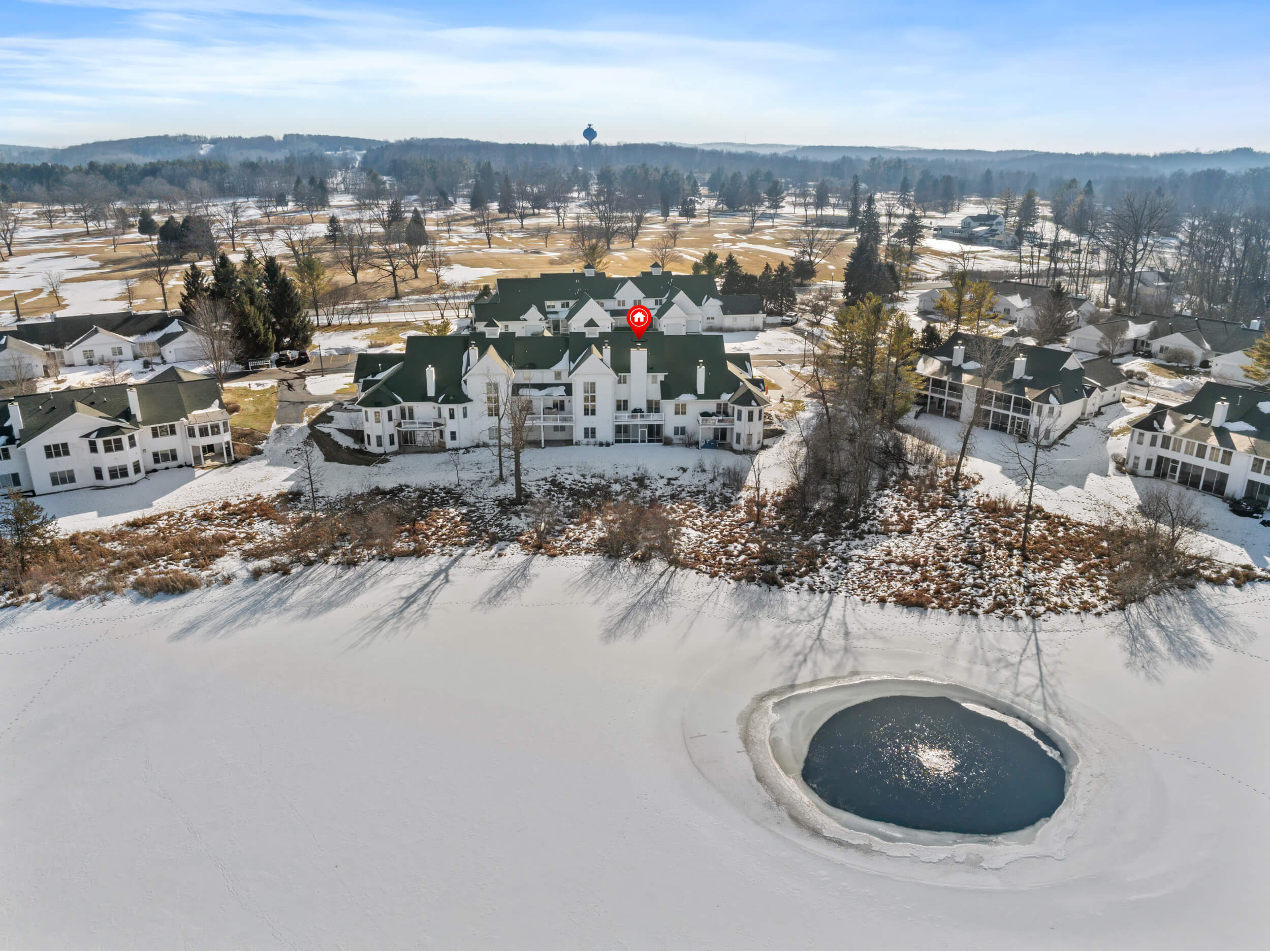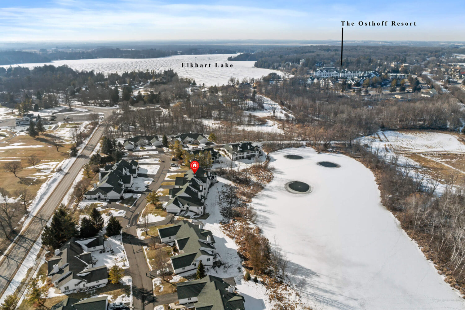 Do not judge this home by the front. This spacious & inviting condo offers the impeccable blend of comfort, updated style, and picturesque views tucked in the Village of Elkhart Lake. 2 bedrooms and 3.5-bath (yes I said three and one half baths) features a wonderful layout designed for functional living & effortless entertaining. Enjoy early morning views or evening leisure from either your private balcony or the lower level screened porch! The finished LL provides even more flexibility with lots of natural light, a 2nd fireplace to cozy up to & a great wet bar area. Upper level hosts the master en-suite along w/ another bedroom & full bath. With beautiful pond views, 2,200+ sq ft, this condo offers a rare combination of relaxation and low-maintenance carefree living at The Greens.