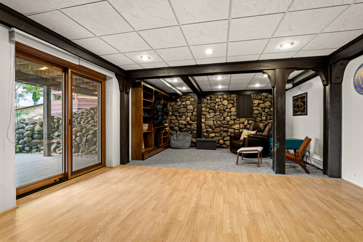 The fully finished lower level adds even more living space, complete with a family room warmed by a Harmon pellet stove, a walk-out to the backyard, and multiple versatile areas for hobbies or relaxation. With several access points, the basement offers comfort and functionality year-round.