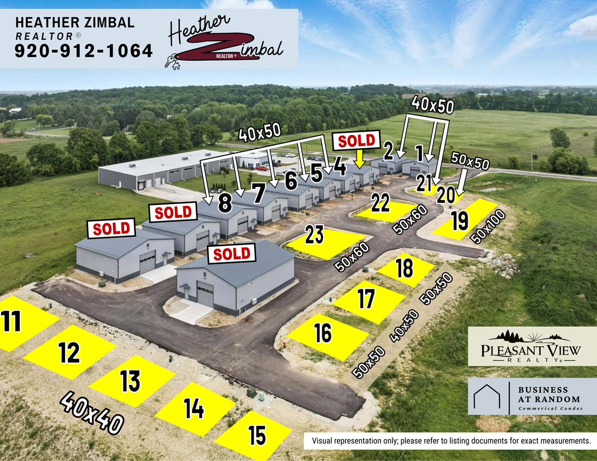 This massive 50×100 WICKs Building is your opportunity to customize the interior from the ground up. Built with 2″x6″ walls, tall ceilings, and a 14-ft overhead door, plus paved driveway and awning entry. Stubbed for in-floor heat and bathroom, and fully serviced by municipal water/sewer, natural gas, and 200 AMP electric. Part of the Business at Random, LLC Association, with lawn and snow care included. Optional upgrades: insulation, epoxy, wall sheeting, shelving, heater, A/C, boiler, bath, or loft. Off Hwy 57, 20 mi to Road America, 45 mi to MKE Airport.