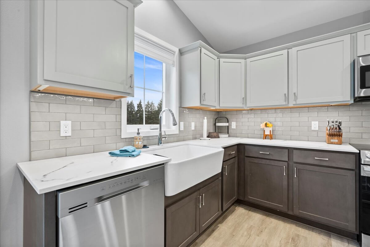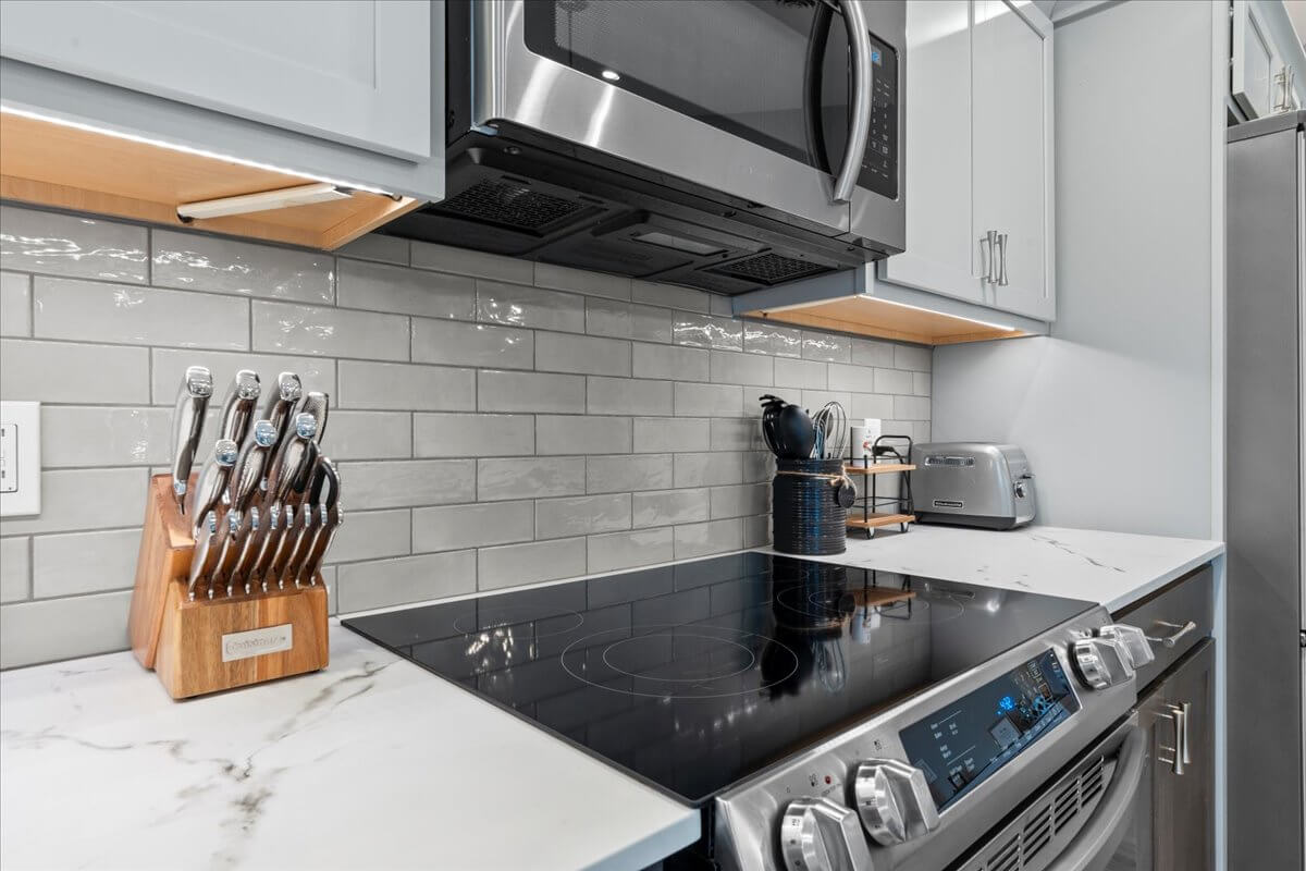 The main unit blends style and function with vaulted ceilings, an open-concept layout, and a kitchen that’s built for entertaining; Dekton countertops, seating for seven at the island, and premium Kohler fixtures. Patio doors open to your private balcony, the perfect spot to relax and take in the views after a day at the track. The primary suite includes a tiled walk-in shower and the secondary bathroom includes a gorgeous Kohler soaking tub with tile surround. Radiant in-floor heat keeps the studio and garage cozy throughout the seasons.