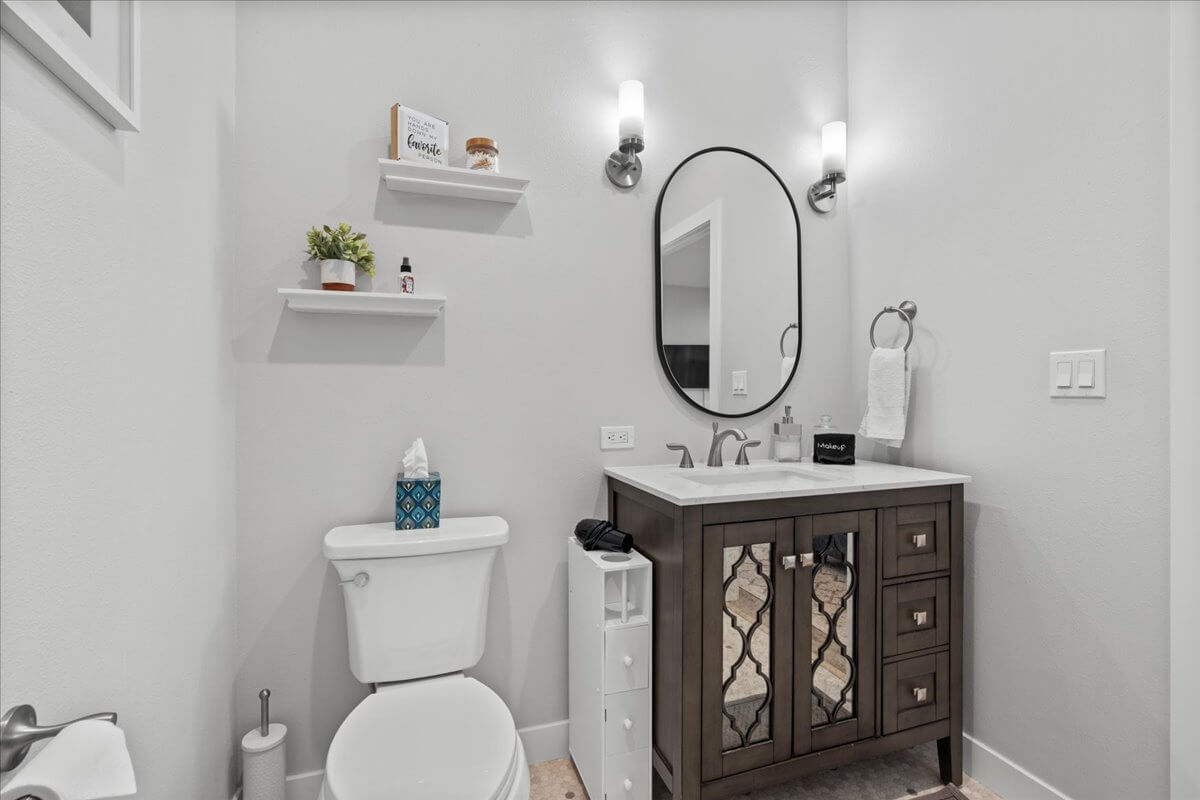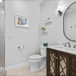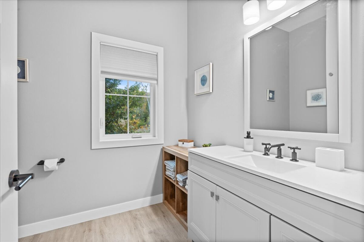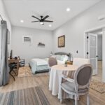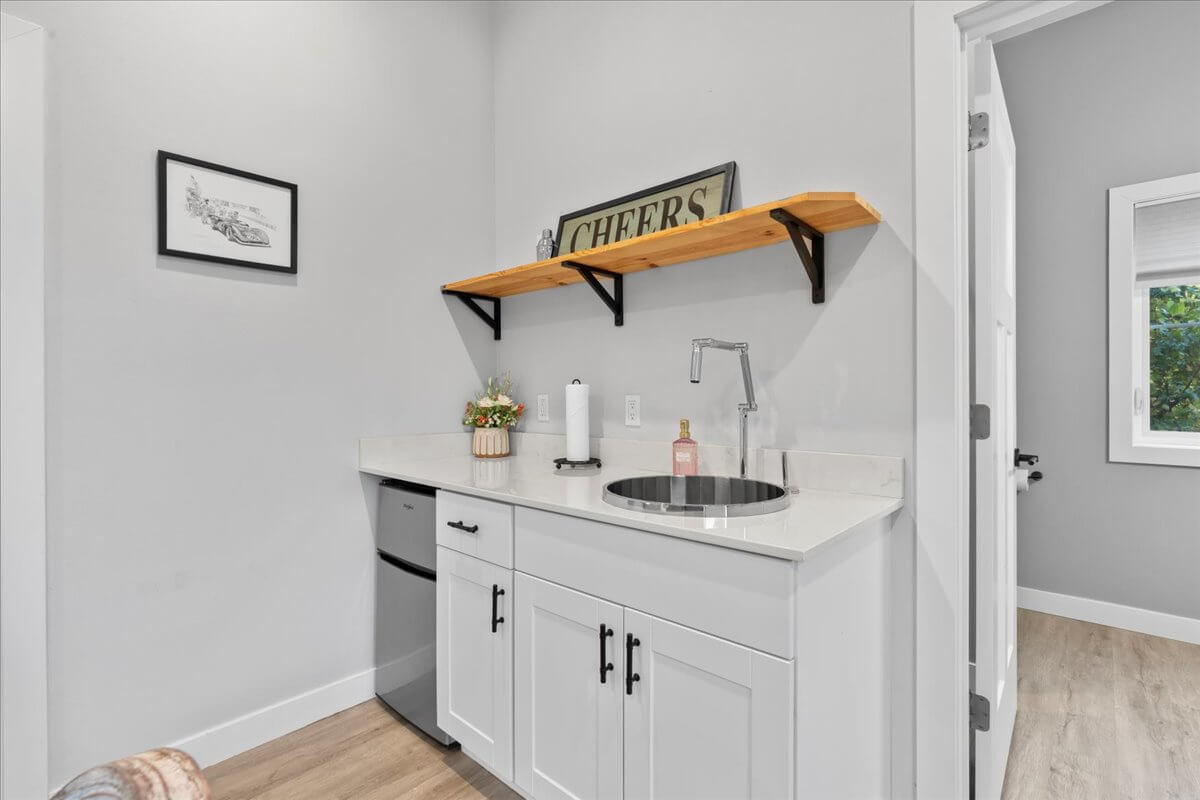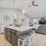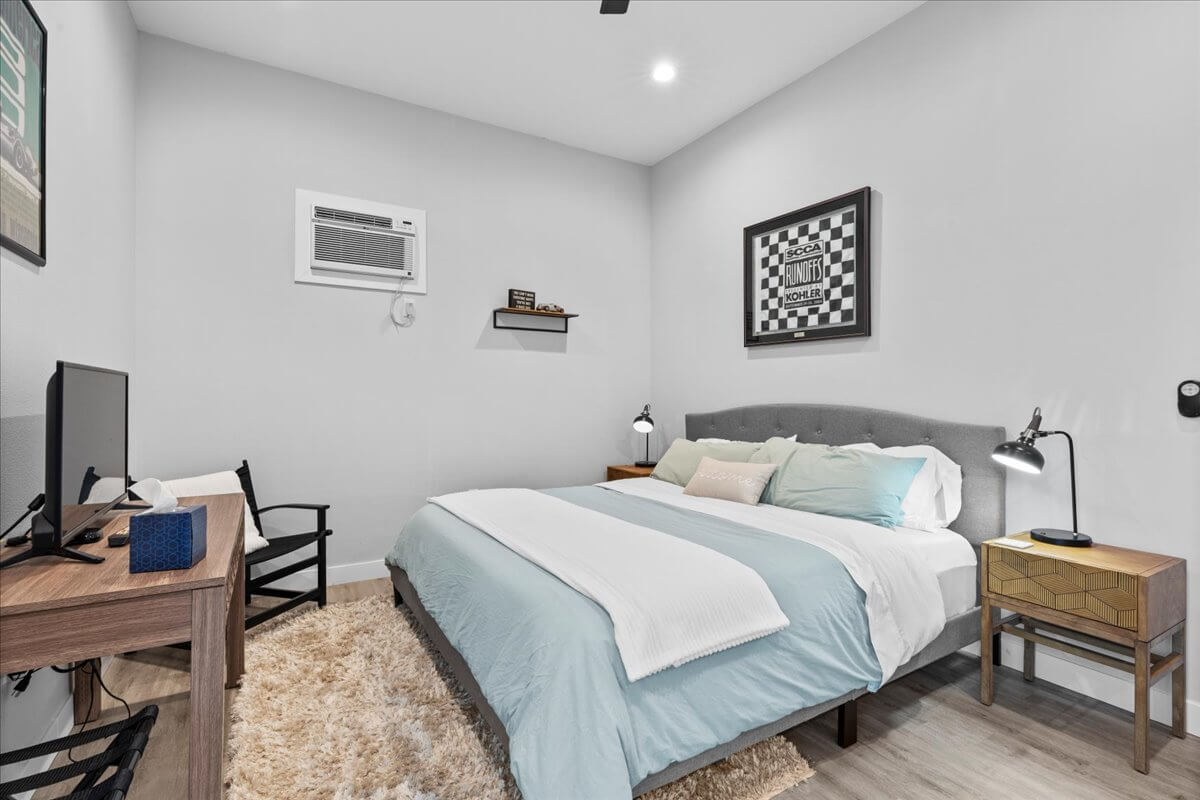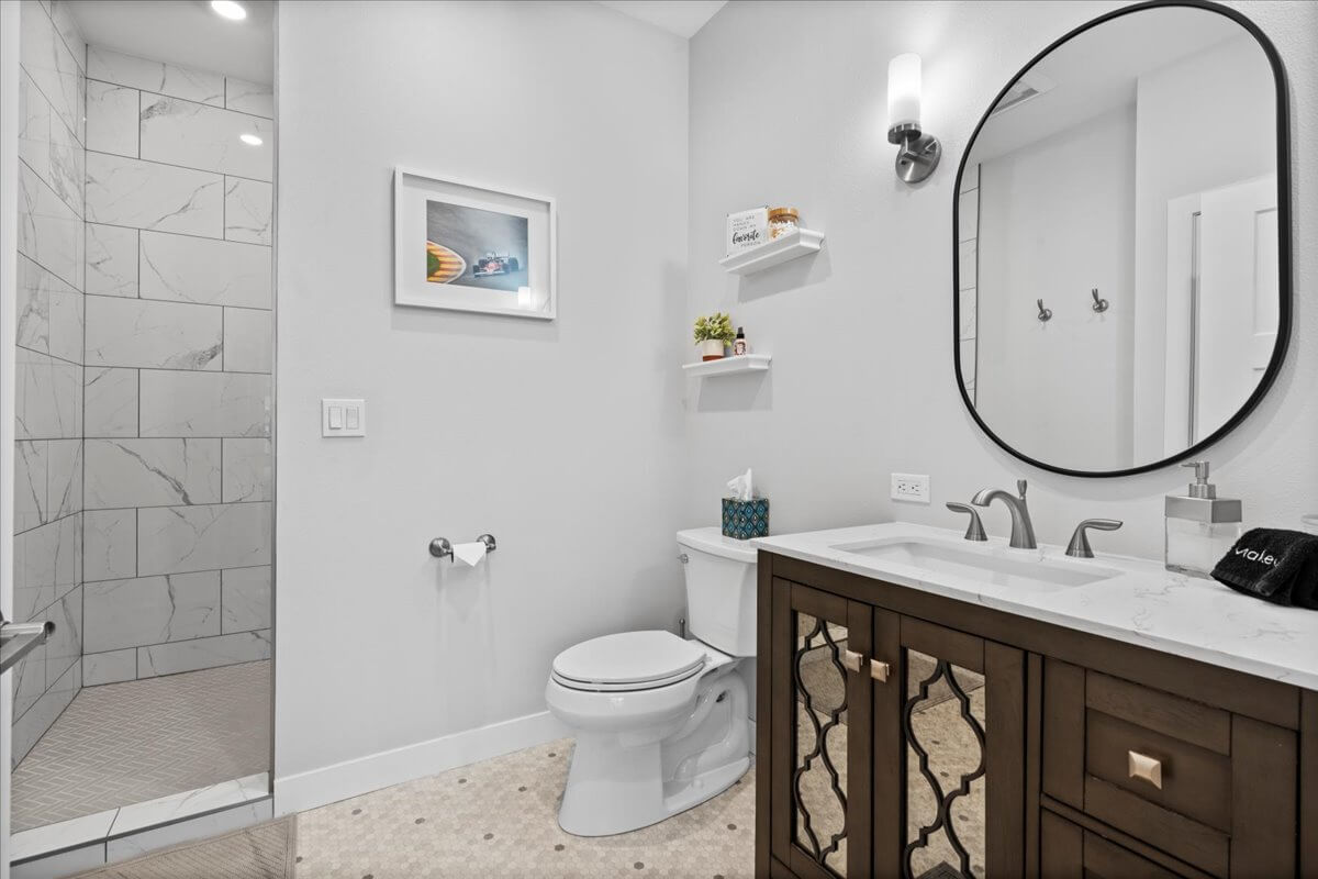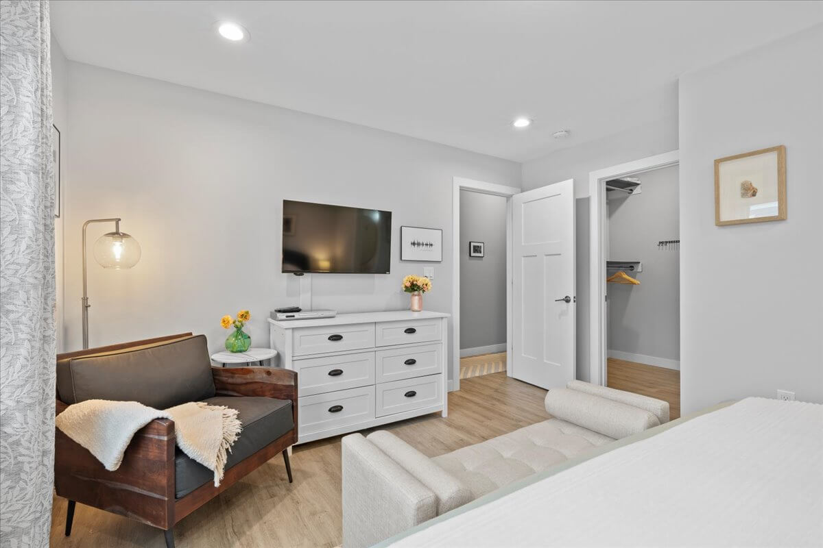 The main unit blends style and function with vaulted ceilings, an open-concept layout, and a kitchen that’s built for entertaining; Dekton countertops, seating for seven at the island, and premium Kohler fixtures. Patio doors open to your private balcony, the perfect spot to relax and take in the views after a day at the track. The primary suite includes a tiled walk-in shower and the secondary bathroom includes a gorgeous Kohler soaking tub with tile surround. Radiant in-floor heat keeps the studio and garage cozy throughout the seasons.