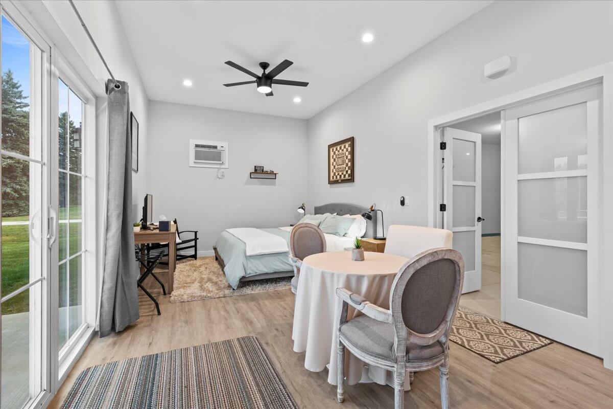 And the garage? A true showstopper. Offering 1,000 sq ft of heated space with an 18-foot-wide door, it’s perfect for storing cars, boats, trailers, or all the gear needed to enjoy Elkhart Lake and Road America weekends. Additional parking is conveniently located at the unit.