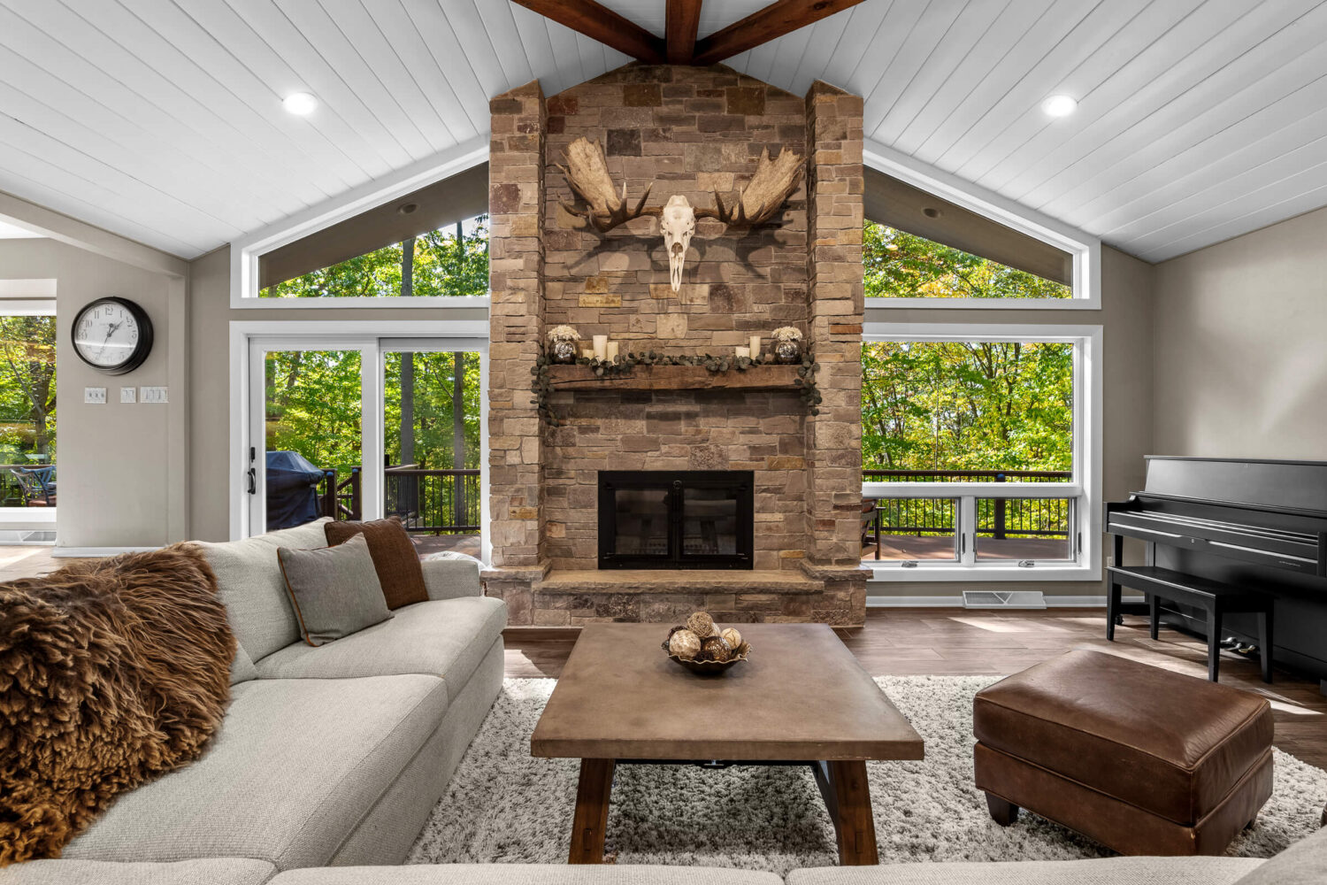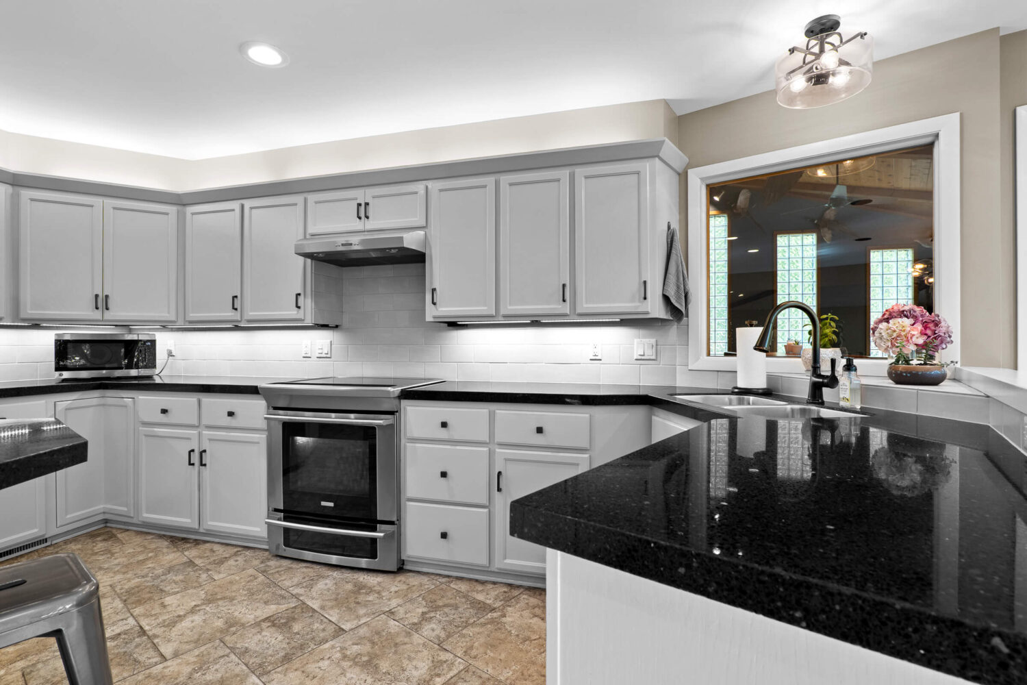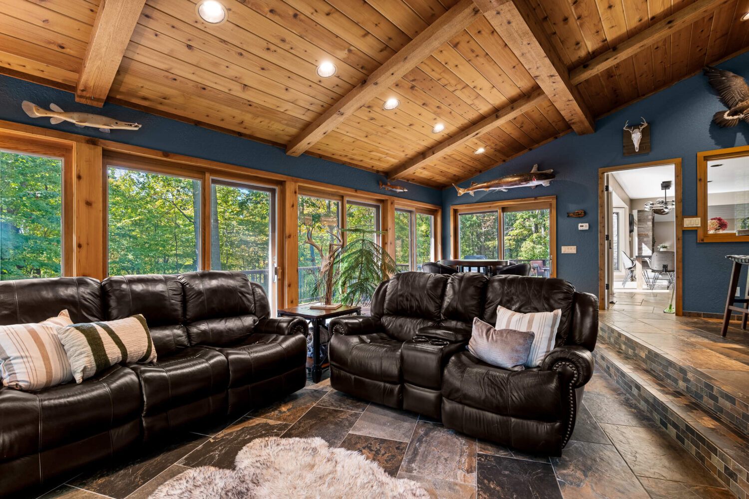 Step inside to discover interiors filled with natural light, abundant new windows, and a layout designed with flexibility in mind. The living room and kitchen have been beautifully remodeled, offering granite overlay countertops, under-cabinet lighting, and an open yet inviting atmosphere. Entertain with ease on the expansive composite deck, perfectly lit for evening gatherings, or enjoy year-round relaxation in the sunroom complete with an indoor hot tub. A whole-home sound system extends both indoors and outdoors, setting the perfect mood for any occasion.