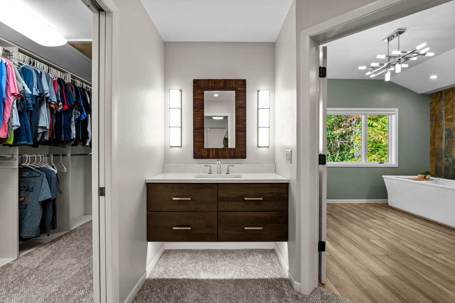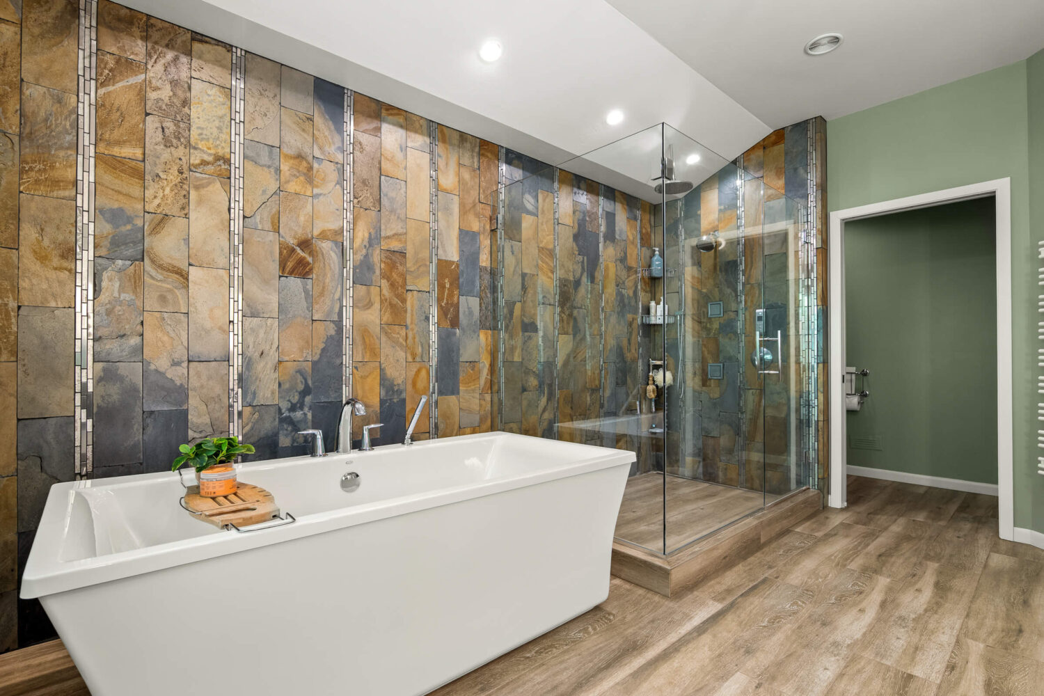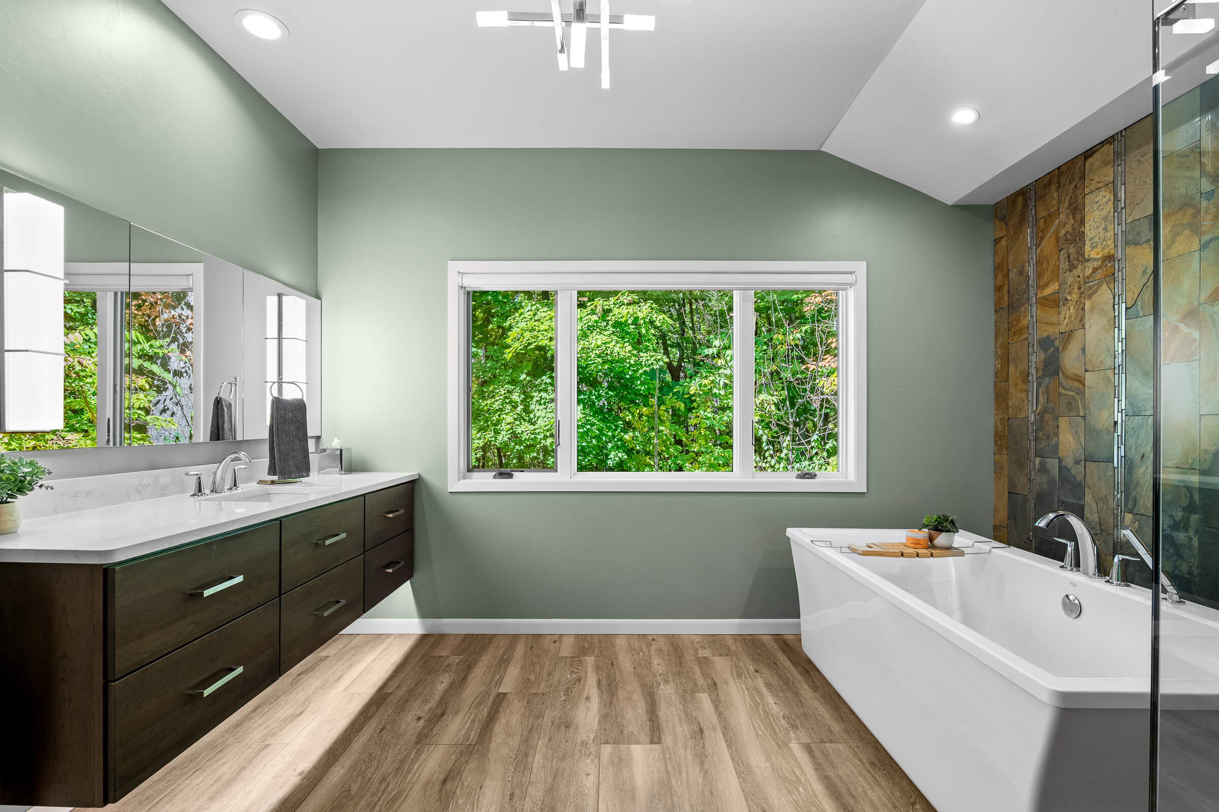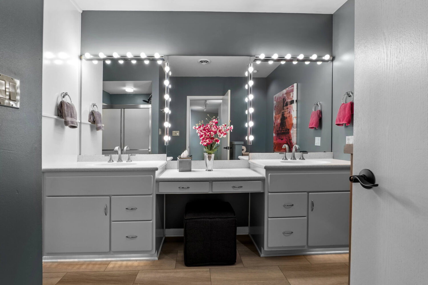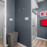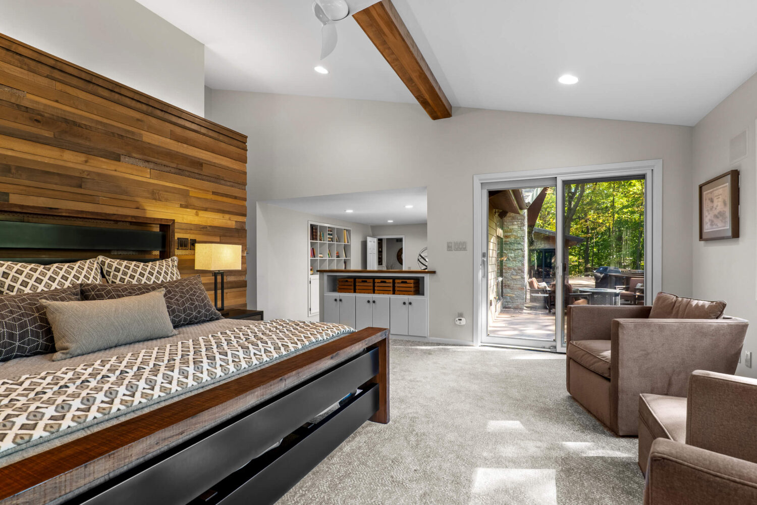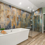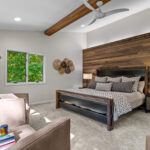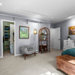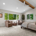 The primary suite is a true retreat. Here you will find his and hers closets, a cedar closet, a private sitting room or library, and direct access to the deck. The remodeled bath features heated tile floors, dual vanities, a soaking tub, a spa-inspired shower with a rainhead, body sprays, and a DTV control system for a fully customized experience. A heated towel rack adds yet another touch of everyday luxury.