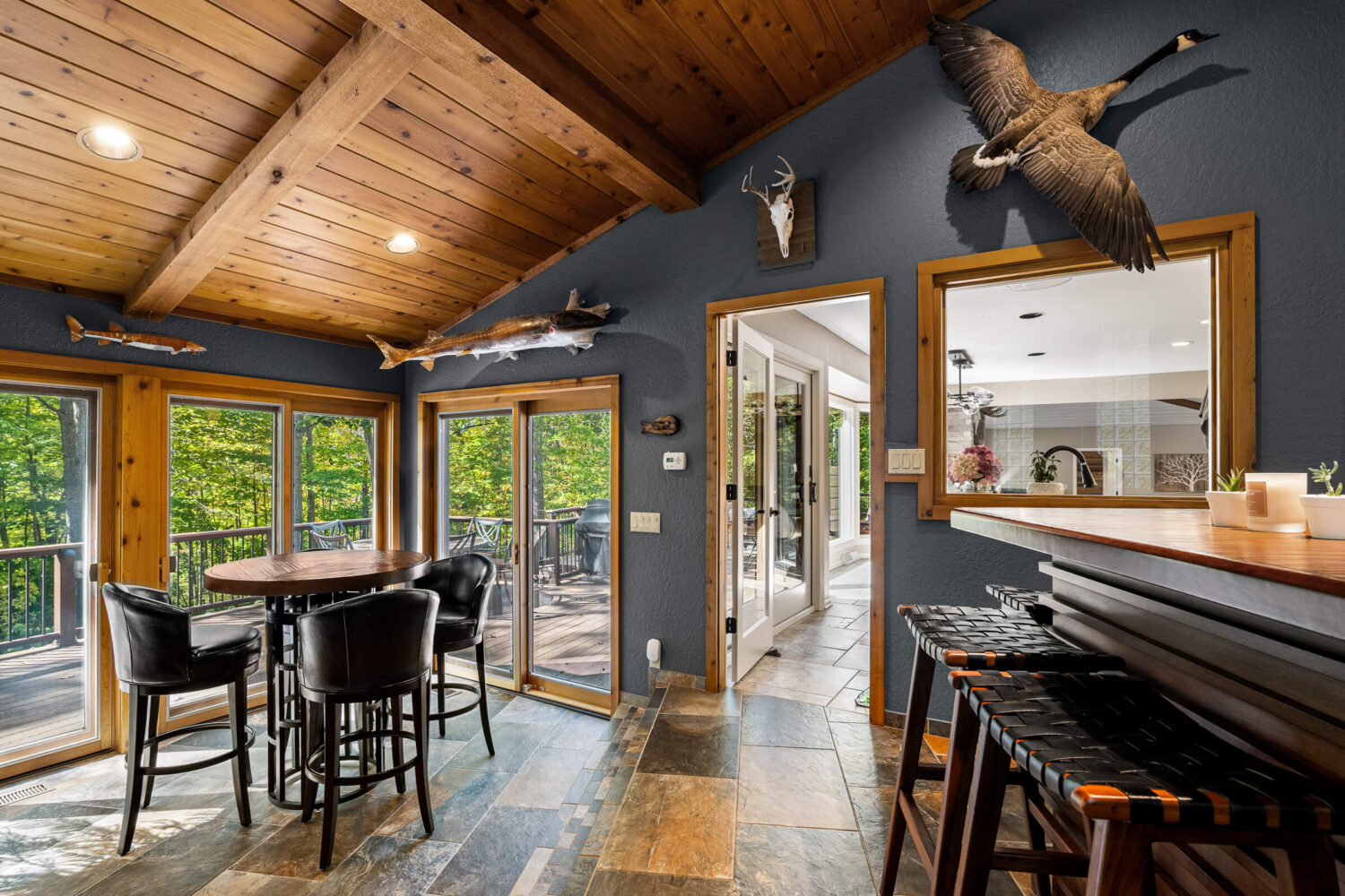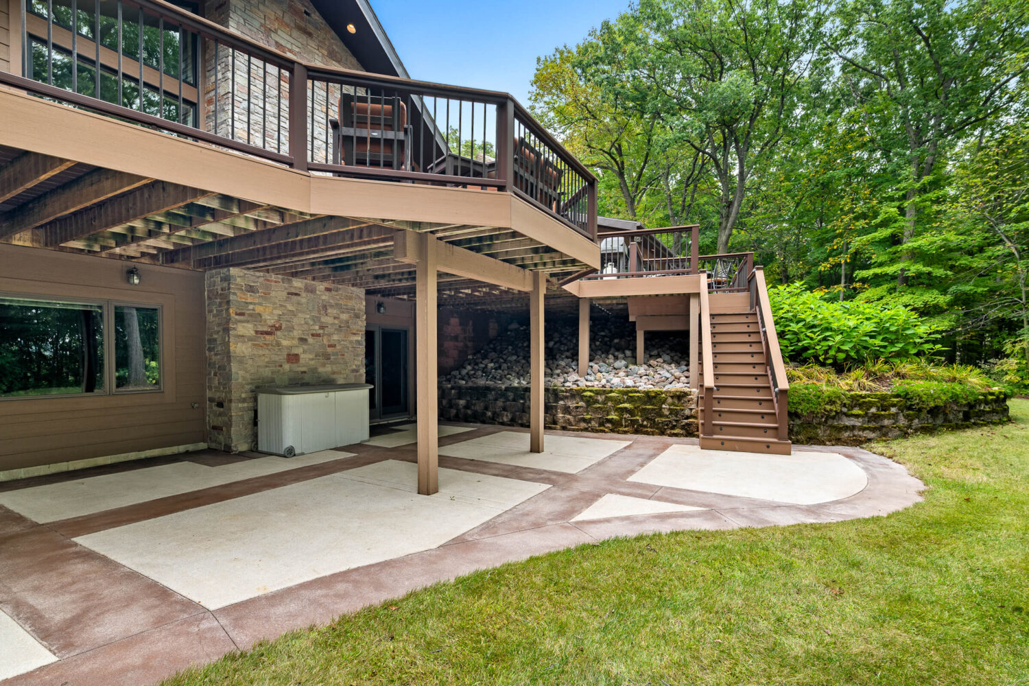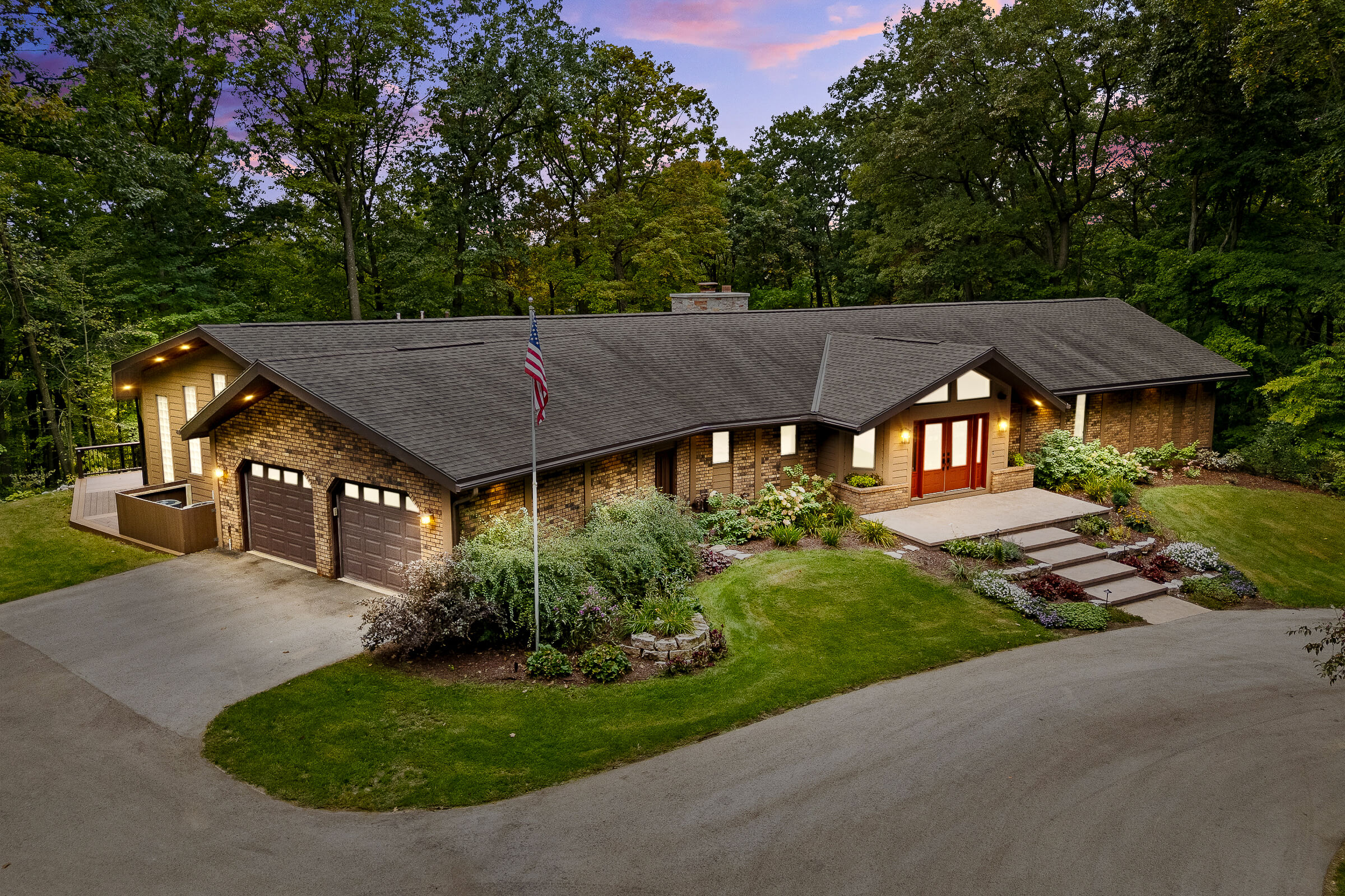 Step inside to discover interiors filled with natural light, abundant new windows, and a layout designed with flexibility in mind. The living room and kitchen have been beautifully remodeled, offering granite overlay countertops, under-cabinet lighting, and an open yet inviting atmosphere. Entertain with ease on the expansive composite deck, perfectly lit for evening gatherings, or enjoy year-round relaxation in the sunroom complete with an indoor hot tub. A whole-home sound system extends both indoors and outdoors, setting the perfect mood for any occasion.
