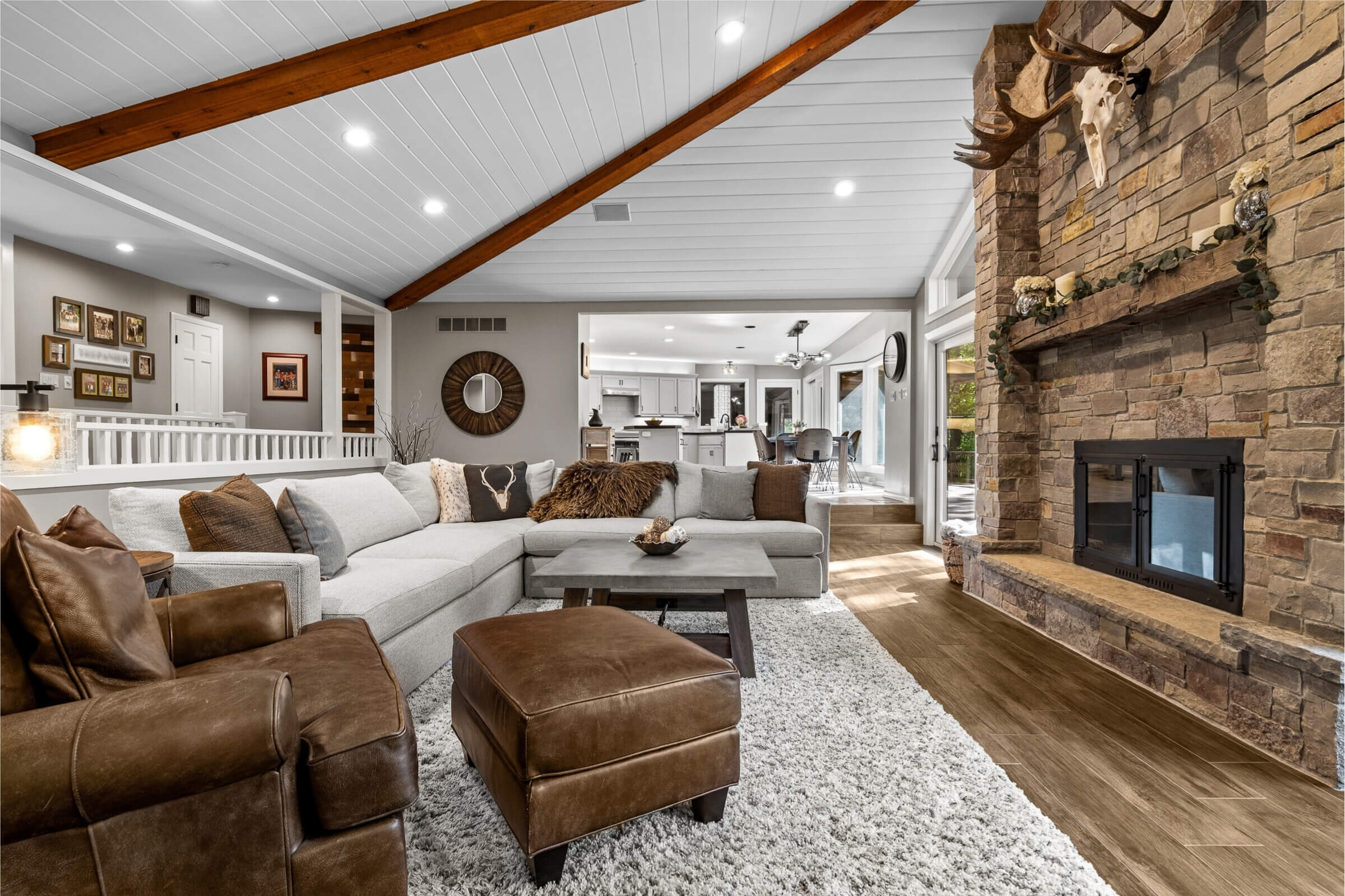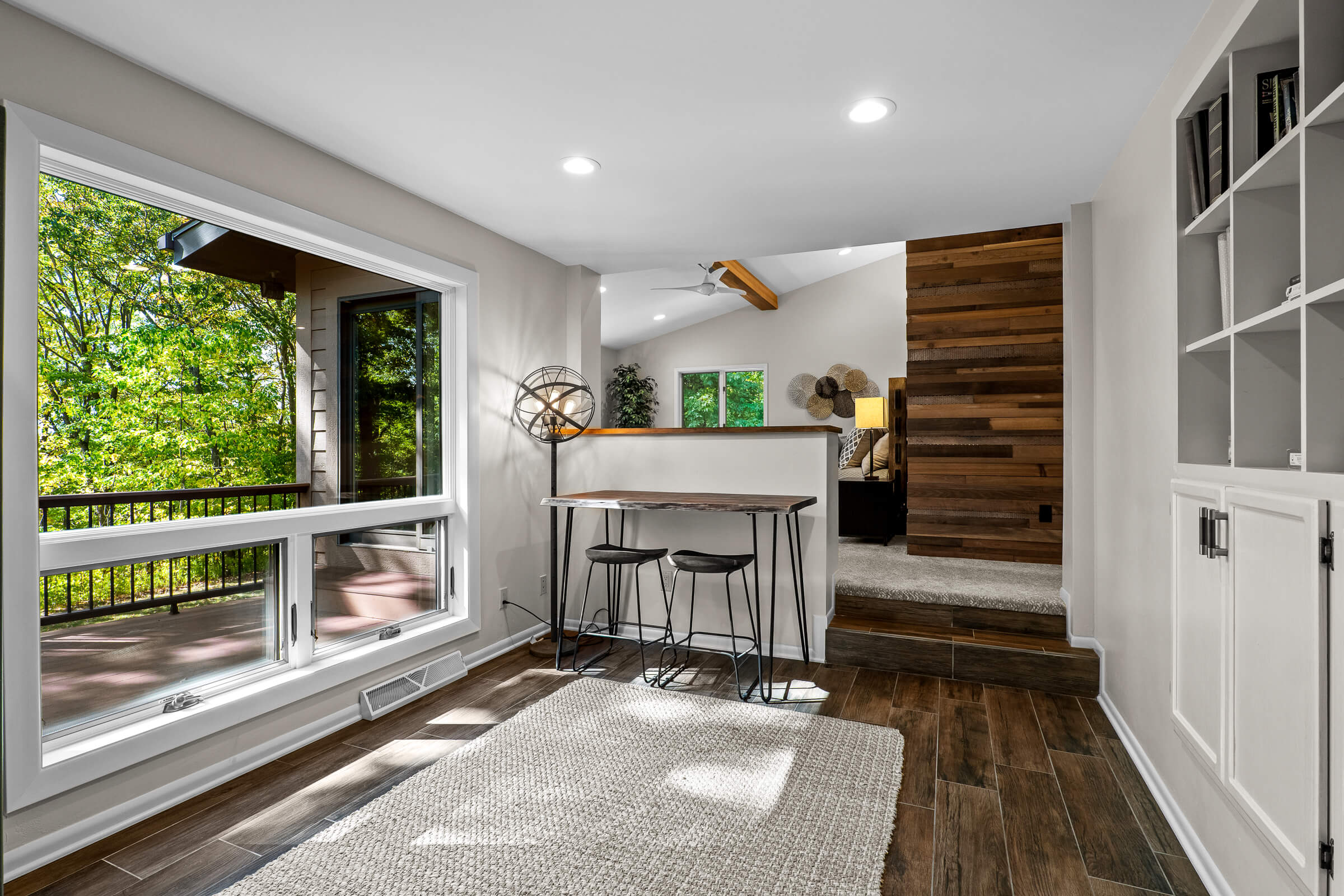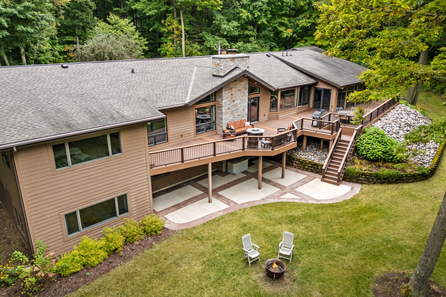 Step inside to discover interiors filled with natural light, abundant new windows, and a layout designed with flexibility in mind. The living room and kitchen have been beautifully remodeled, offering granite overlay countertops, under-cabinet lighting, and an open yet inviting atmosphere. Entertain with ease on the expansive composite deck, perfectly lit for evening gatherings, or enjoy year-round relaxation in the sunroom complete with an indoor hot tub. A whole-home sound system extends both indoors and outdoors, setting the perfect mood for any occasion.