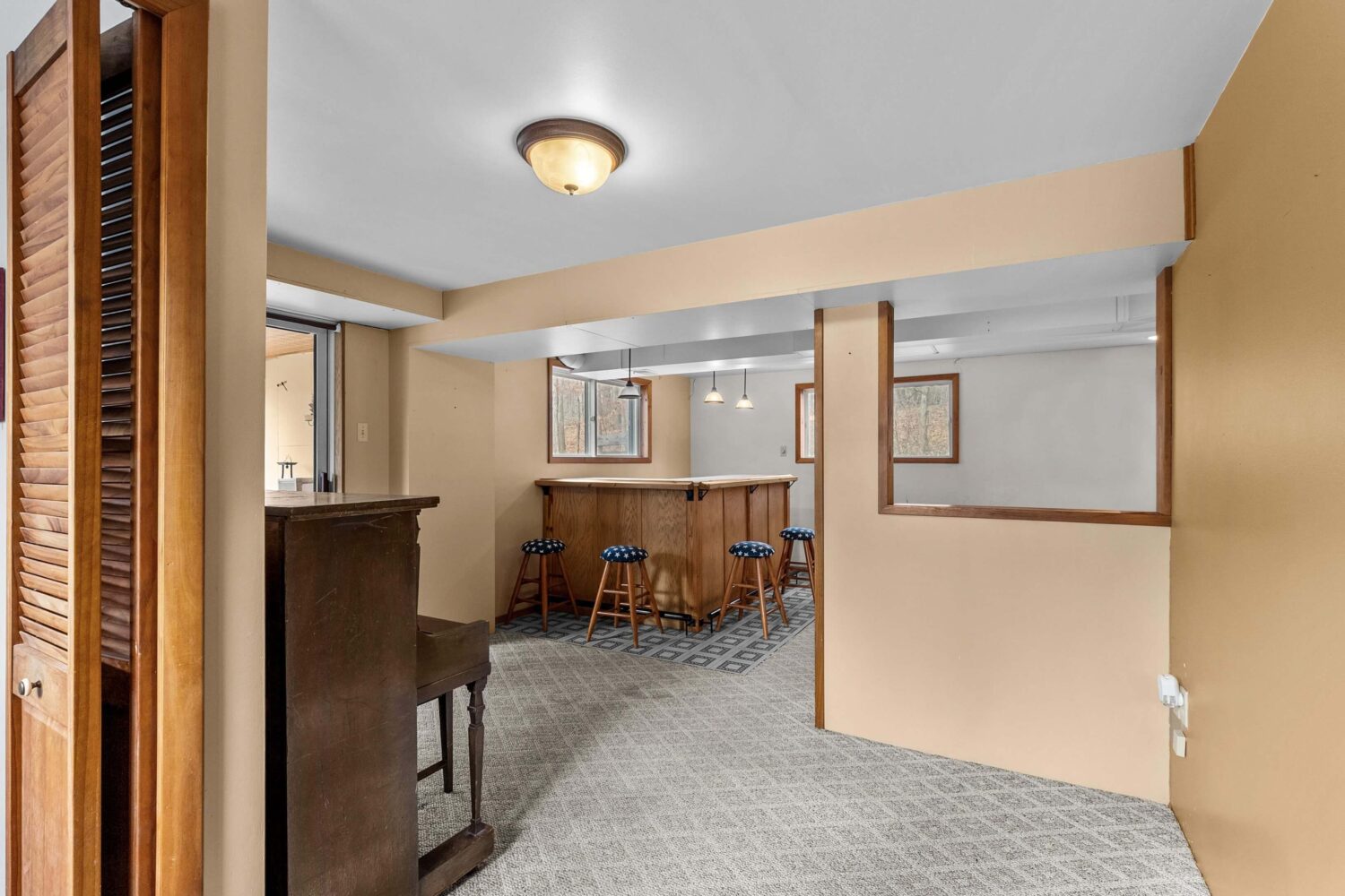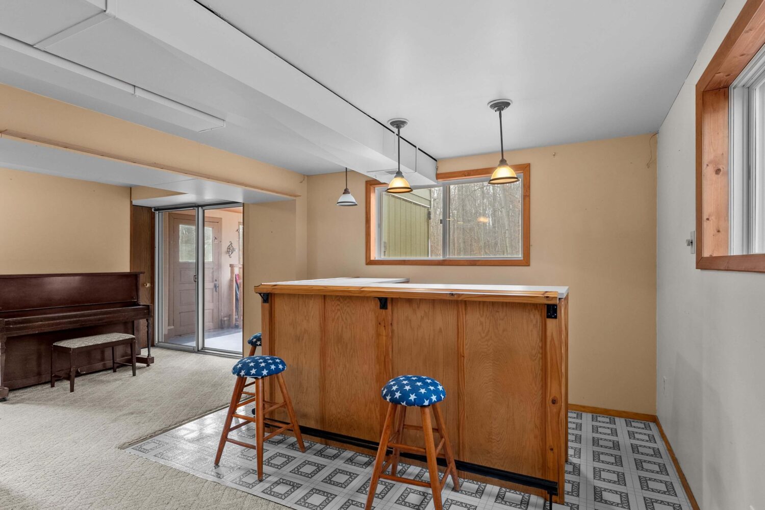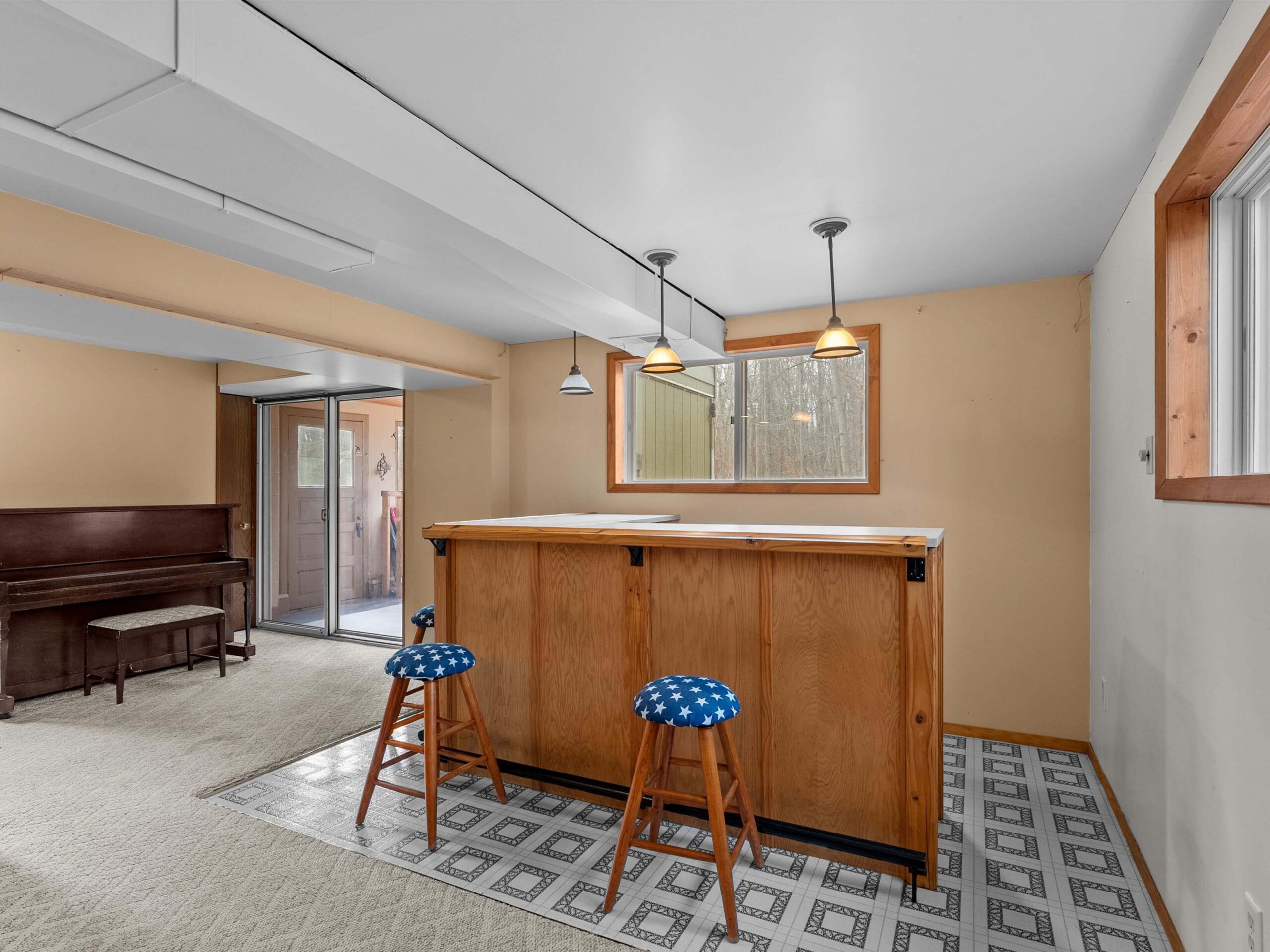 The finished, walkout lower level expands your living space even further. A cozy family room features a built-in entertainment center and bar—perfect for movie nights or hosting friends and family. This level also includes a den, half bath, laundry area, and a bright three-season room overlooking the peaceful backyard.