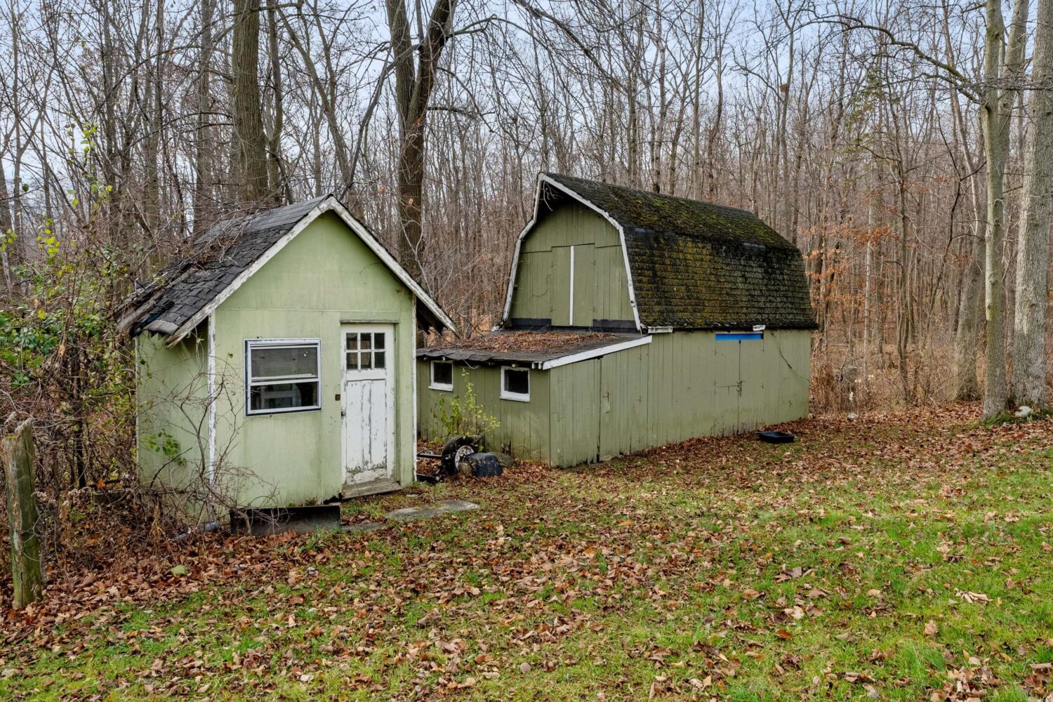 Dishwasher, Microwave, Water Softener, Piano, Stacked Wood Pile in Backyard