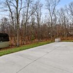 Additional exterior features include a 2.5-car detached garage with loft storage, a 16′ x 40′ concrete pad ideal for RV parking or extra equipment, and a paved driveway with additional parking spaces.